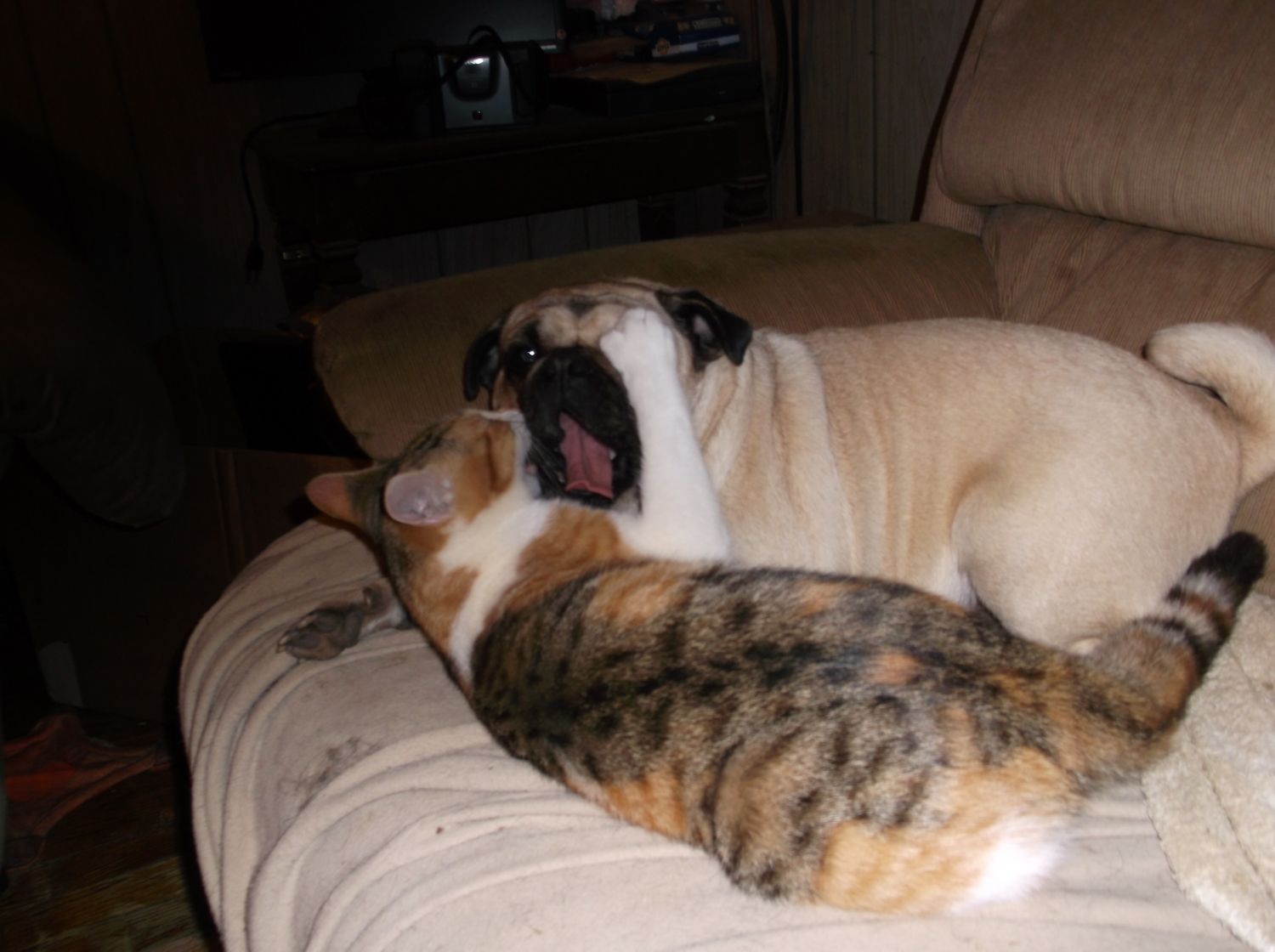 it NEVER ceases to amaze me how dogs and cats - two animals with COMPLETELY different 'play' behaviors - can communicate the difference between play and attack. At my house, they take turns being the prey and letting the other one 'maul' them. How does the cat know that having the dog mouth all over it is not a threat??? How does the dog know that right now the paws are harmless, but later they MUST be avoided???? Why do they do this???
