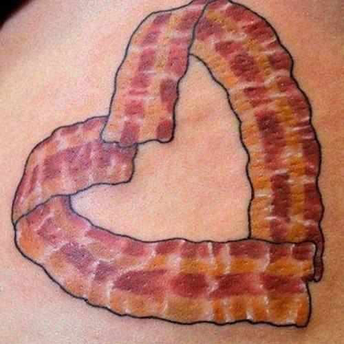 Ok, I love bacon as much as anybody can, I have tattoos, and I love heart-shaped gemstones, but I don't think I am quite ready to tattoo a heart-shaped bunch o' bacon on my body. At almost sixty, I don't see it on the horizon, either. Just sayin'.