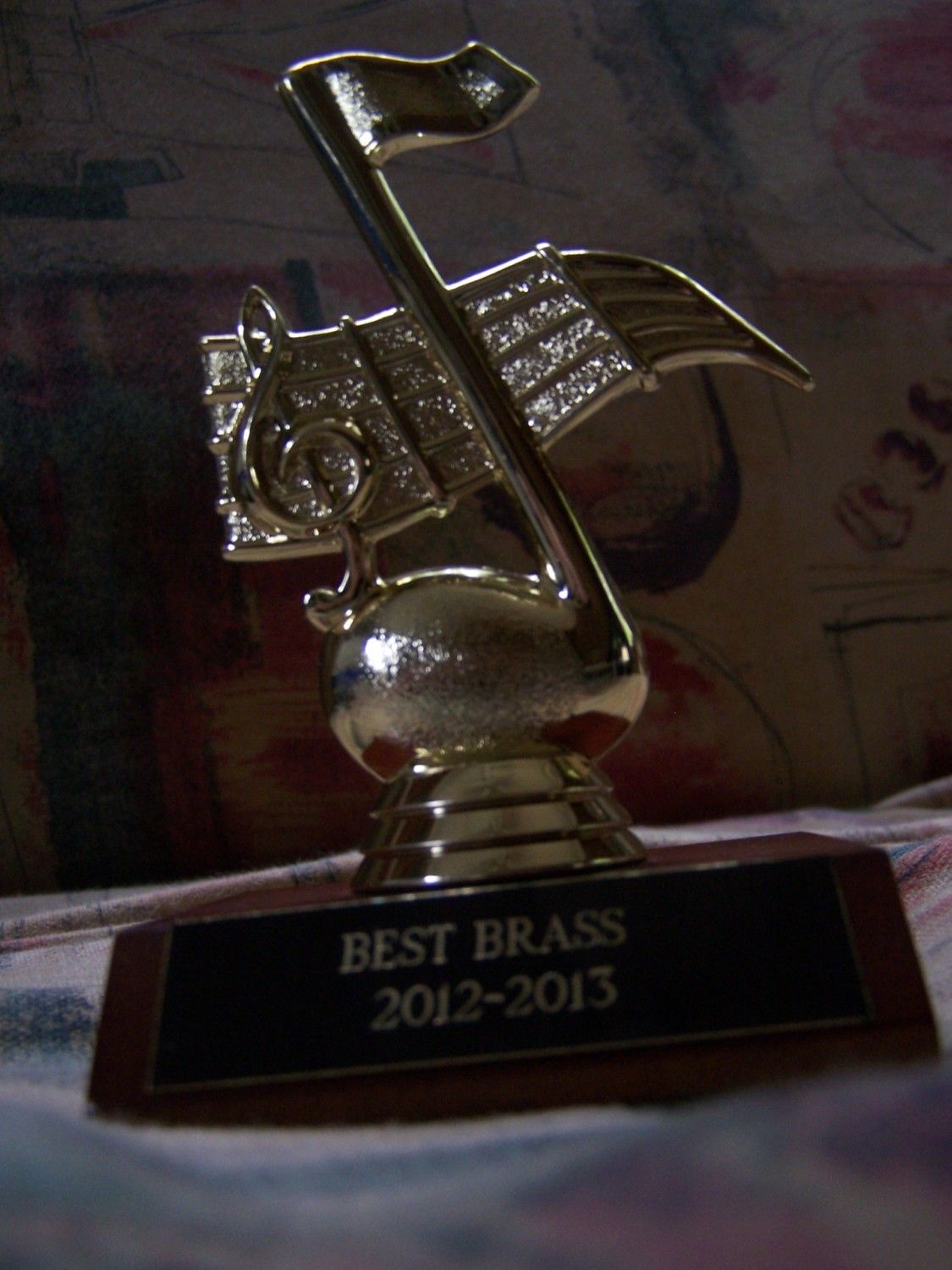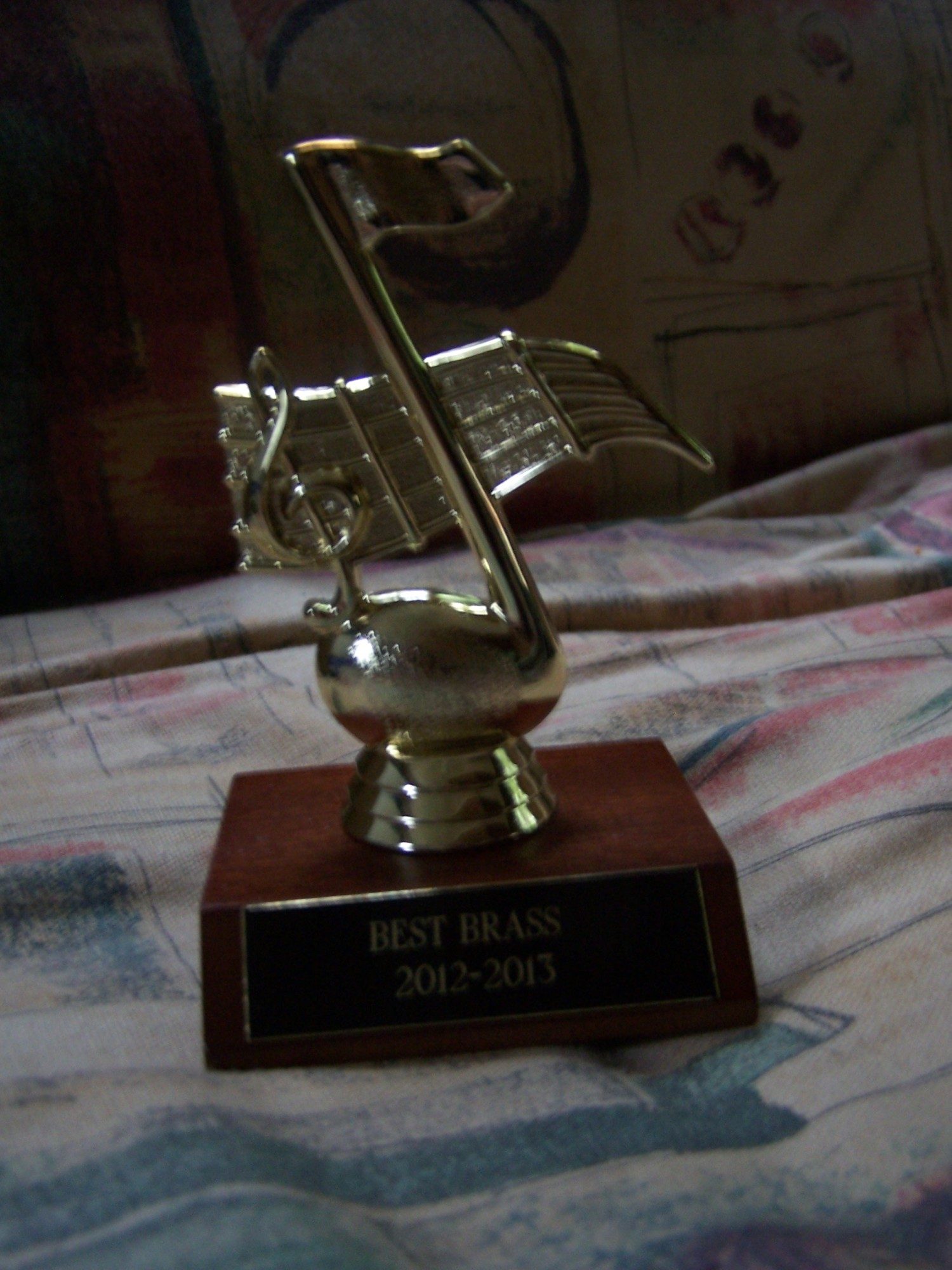 I'm in a home school band, and we had the concert on Saturday. We played pirates of the caribbean, which has all of the songs in it, go west, that has the magnificent seven, the good, the bad and the ugly and hang 'em high, the lion king, that has all of the songs from the movie in it, the songs from lord of the rings, my favorite is earth, wind and fire, that has september, after the love is gone, getaway,fantasy and some other one, macini magic that has baby elephant walk, moon river, the pink panther and peter gun in it,the theme from the a team, stmphony of sitcoms that has woody woodpecker, the dick van dyke show, mister ed, leave it to beaver, hogans heros, the beverly hillbillies, green acres, and I love lucy in it and the 1960's spider-man theme. Anyways, I got the best brass player trophy, (I play the trombone). Here's some pictures.![]()