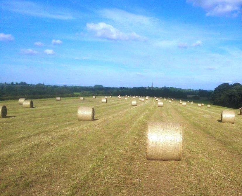 Ok, he must have take the picture from on the tractor. The height the camera is above the bales make them look like the 2 foot ones.They are large bales of hay 4ft by 4ft 4inch