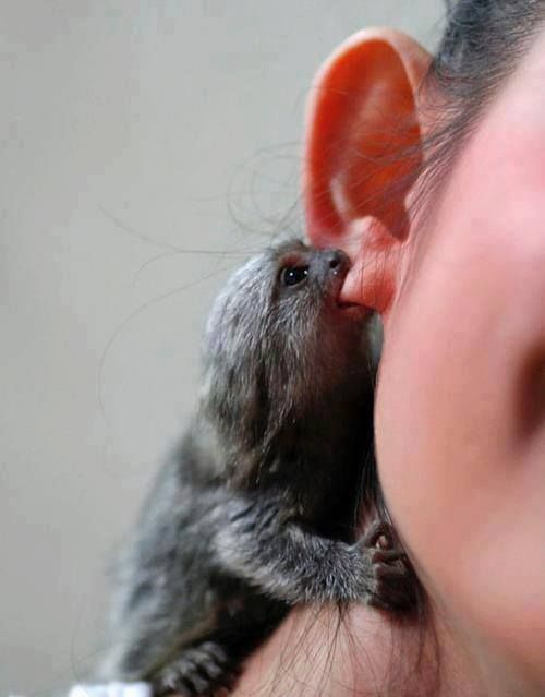 Pigmy Marmoset I think ts called. Saw a picture the other day of one hanging on someone neck an sucking on their ear.