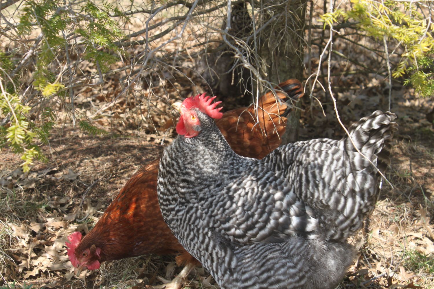 Little too much yellow to be Barred Rocks I think... maybe Black Australorps?