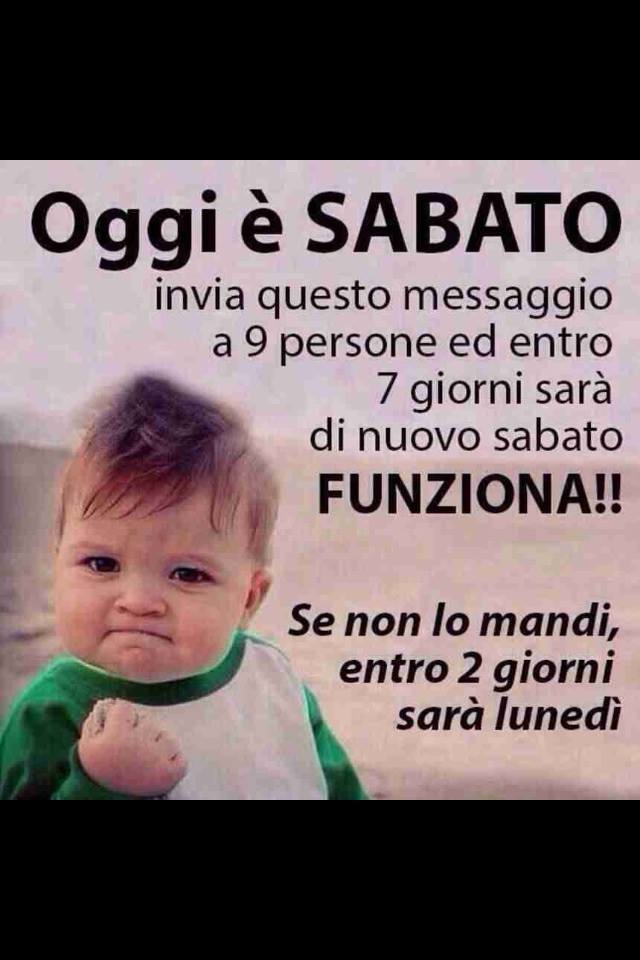 Today is Saturday. Send this message to 9 people and in 7 days there will be another Saturday.