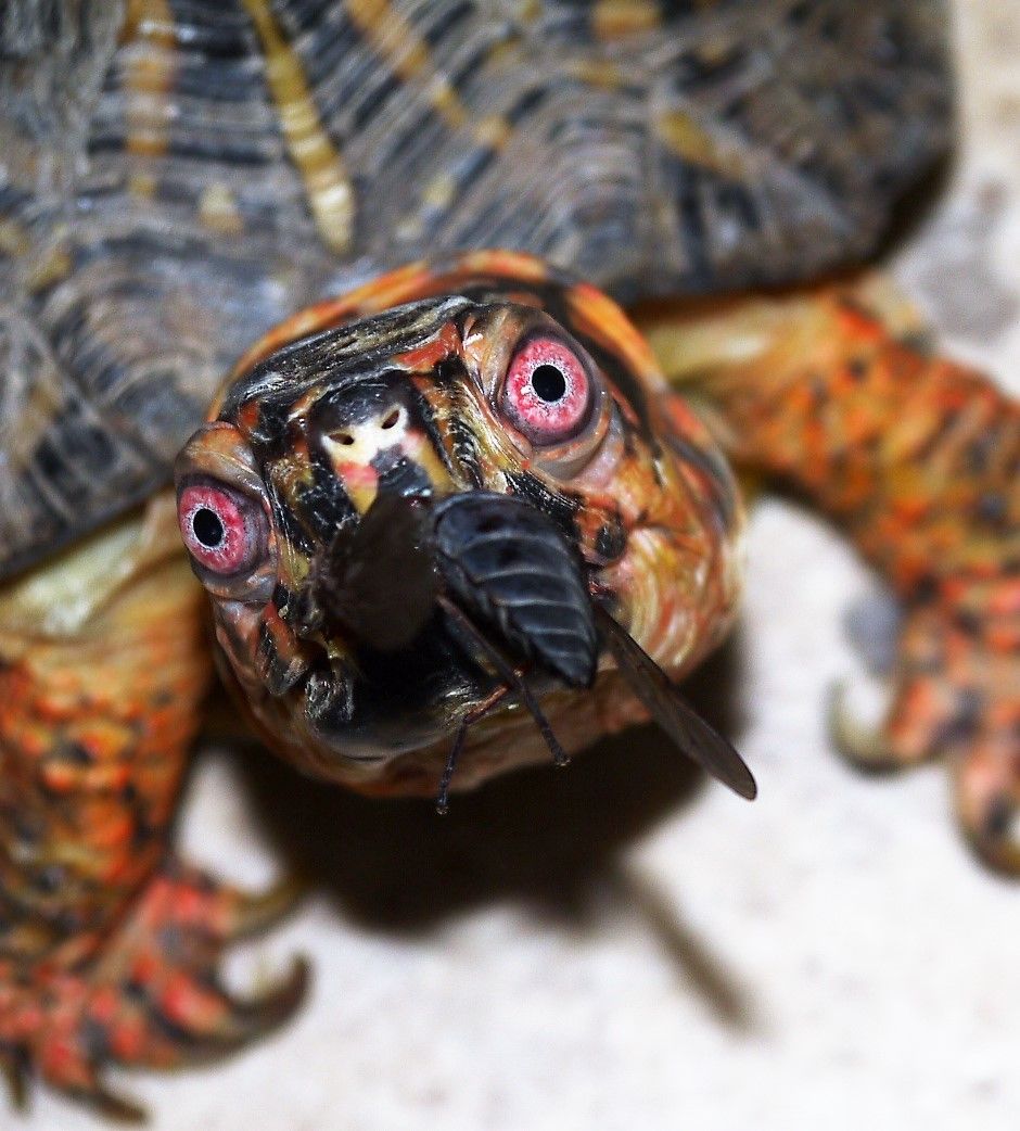 My turtle eating a horsefly happily donated by my horse.What the heck is that