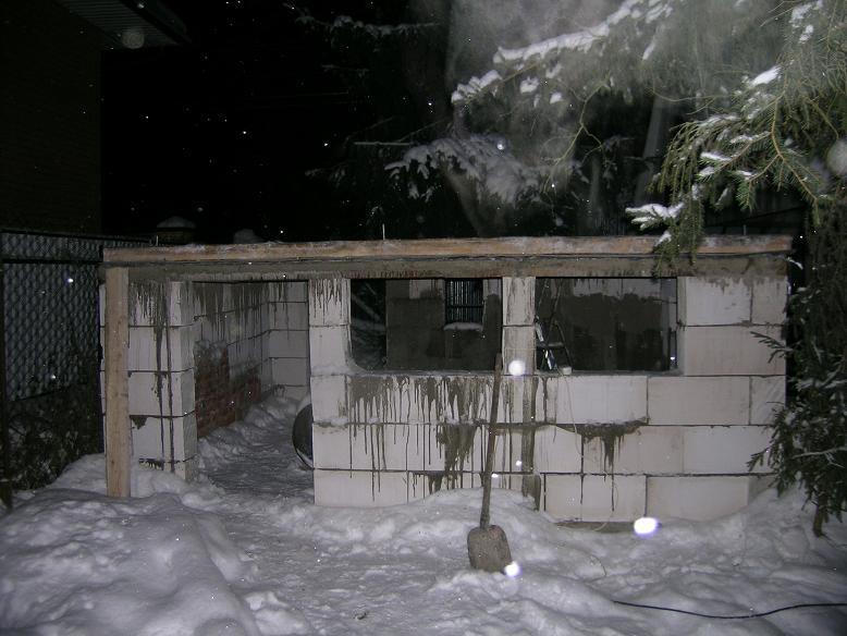 Goose shed. I strongly smeared solution, but hope to fix it when begin to cover the plaster (somewhere i cover it yet - it's just a little left of cement and I decided to use it for a plaster). I was in a hurry to have time until the severe frosts began.