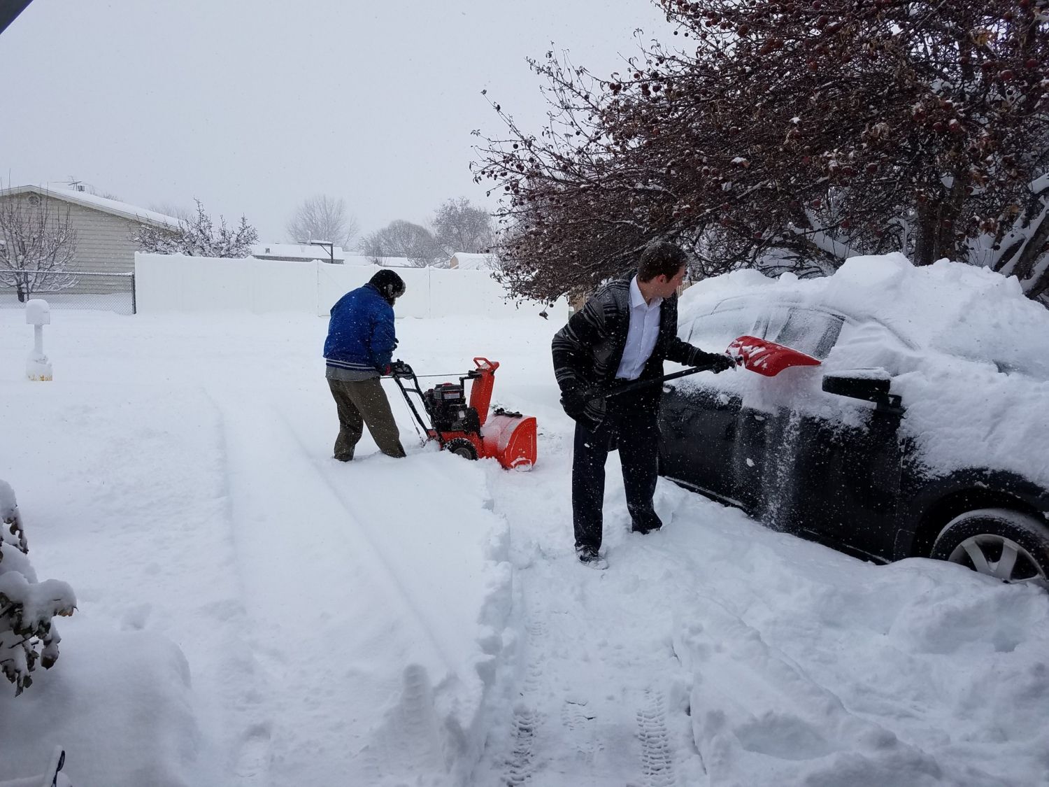 In the meantime, my hubby had the snow blower out to get it off of the driveway.