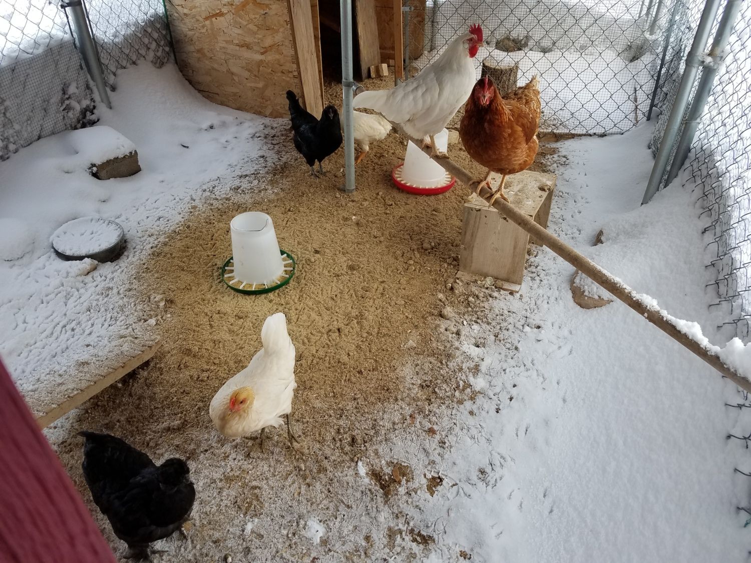 Poor chickens..should have put a tarp up on the sides! They just hang out on that roost,