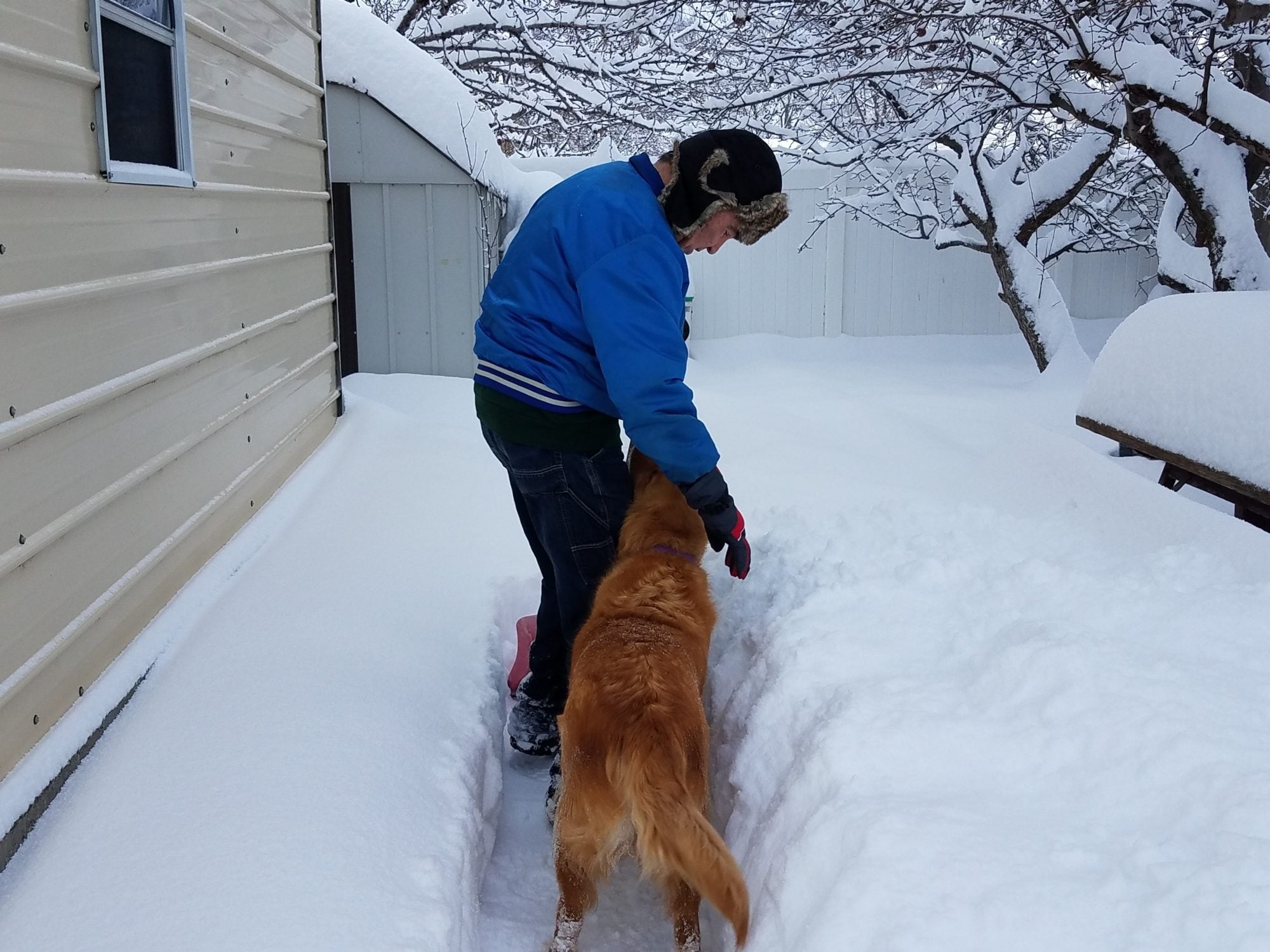 Big dog loved the snow. Little dog didn't. Brody went potty, then ran all the way back to the door!