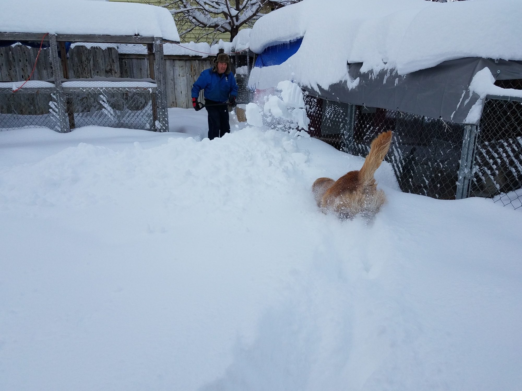 Lol! We had a Pekingese once. A broad dog with short legs. She loved the snow so much. She'd be like the ice breaking ships, except with snow. She'd raise up on her hind feet and drop down into the fresh snow. In effect, packing down the snow in trails. The other little dogs would patiently wait behind her while she did her paths throughout the yard. In no time it look like a maze. Now, I'd always shoveled an area for them to go potty, but it was never where they wanted and not good enough. And of course with the Great Dane, it doesn't matter, he likes to run Seabiscuit, kicking up a giant rooster tails of snow. :)