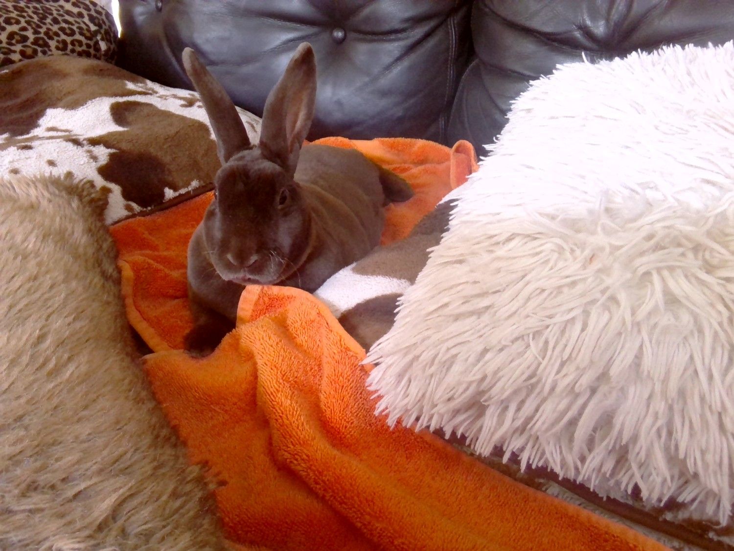 Cute. I have a "Mini Rex" too. He isn't mini either, he is about 3 times the size of my friends Netherland dwarf bunny.