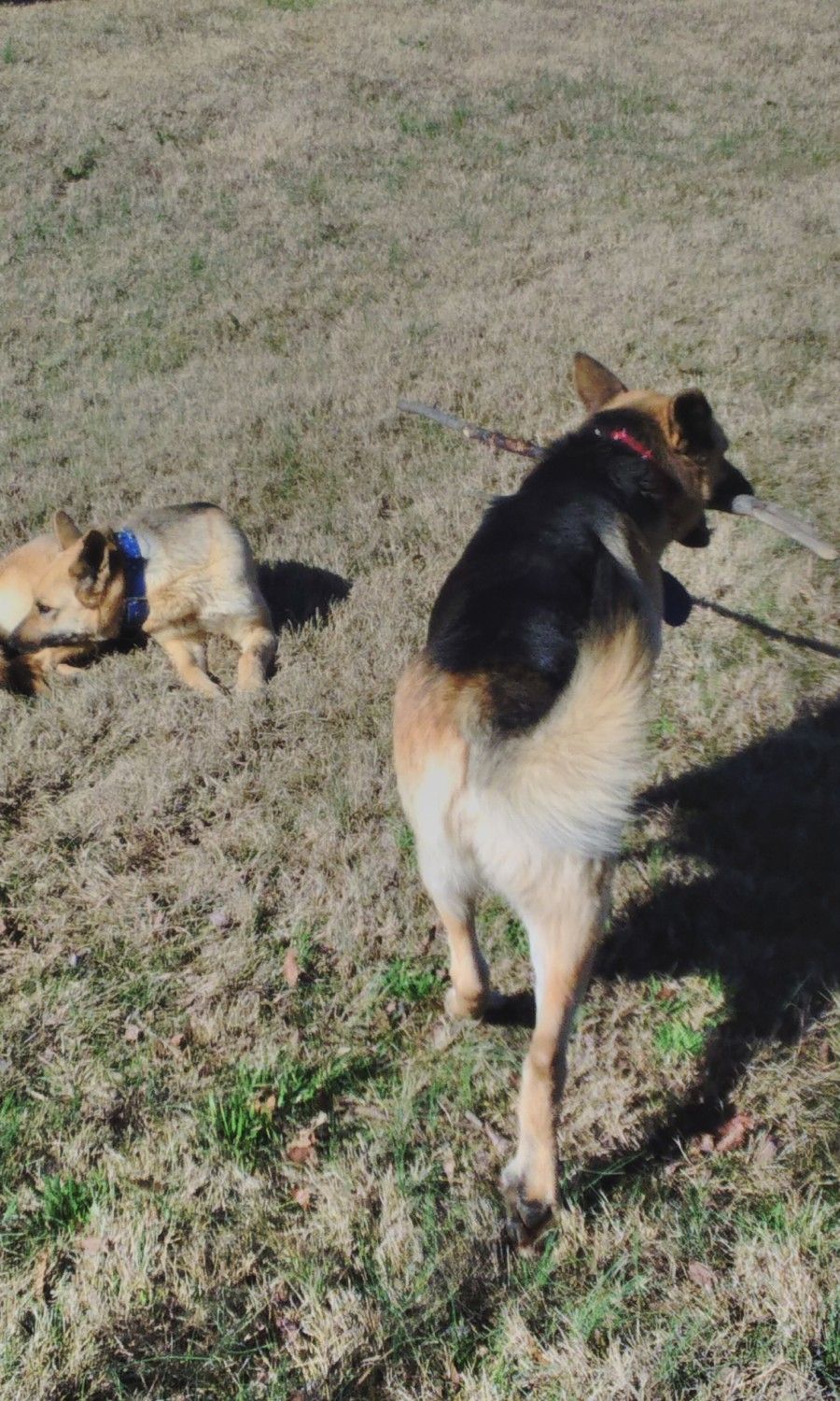 Tank reminds me of a rescue my husband and I had years ago. Bunsen clearly had some Shepherd in him, but whether it was German or Belgian, we were never sure. His coat was kinda wavy, rather than smooth, and it's hard to explain, but he looked like Tom Selleck . . . . Anyway, he was always getting into some kind of trouble, and his brother Cisco was right behind him. I'd be angry, absolutely breathing fire, and Bunsen would come to me and sit down, and you could just hear him thinking, "Sit. You never get in trouble by sitting." So of course, I couldn't fuss - he was doing what he was supposed to do, right? He'd cock his head to one side, and it was just like he was saying, "You're mad again. You really ought to see someone about that temper of yours." Gads I miss that dog!