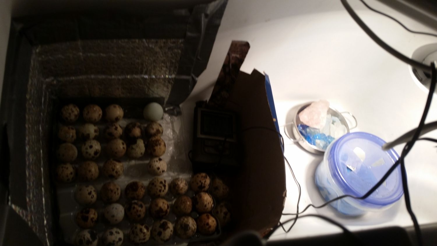*Every quail breeder has their own humidity and temp preferences....I keep the temps in between 99.5F and 101F...however I try to keep it at 99.5 Fas much as I can. (in my new incubator *a cabinet* I now keep it at 100.6 and I still have gorgeous hatches) Humidity I keep in the 40s until the last four days of incubation where i up it to 60%