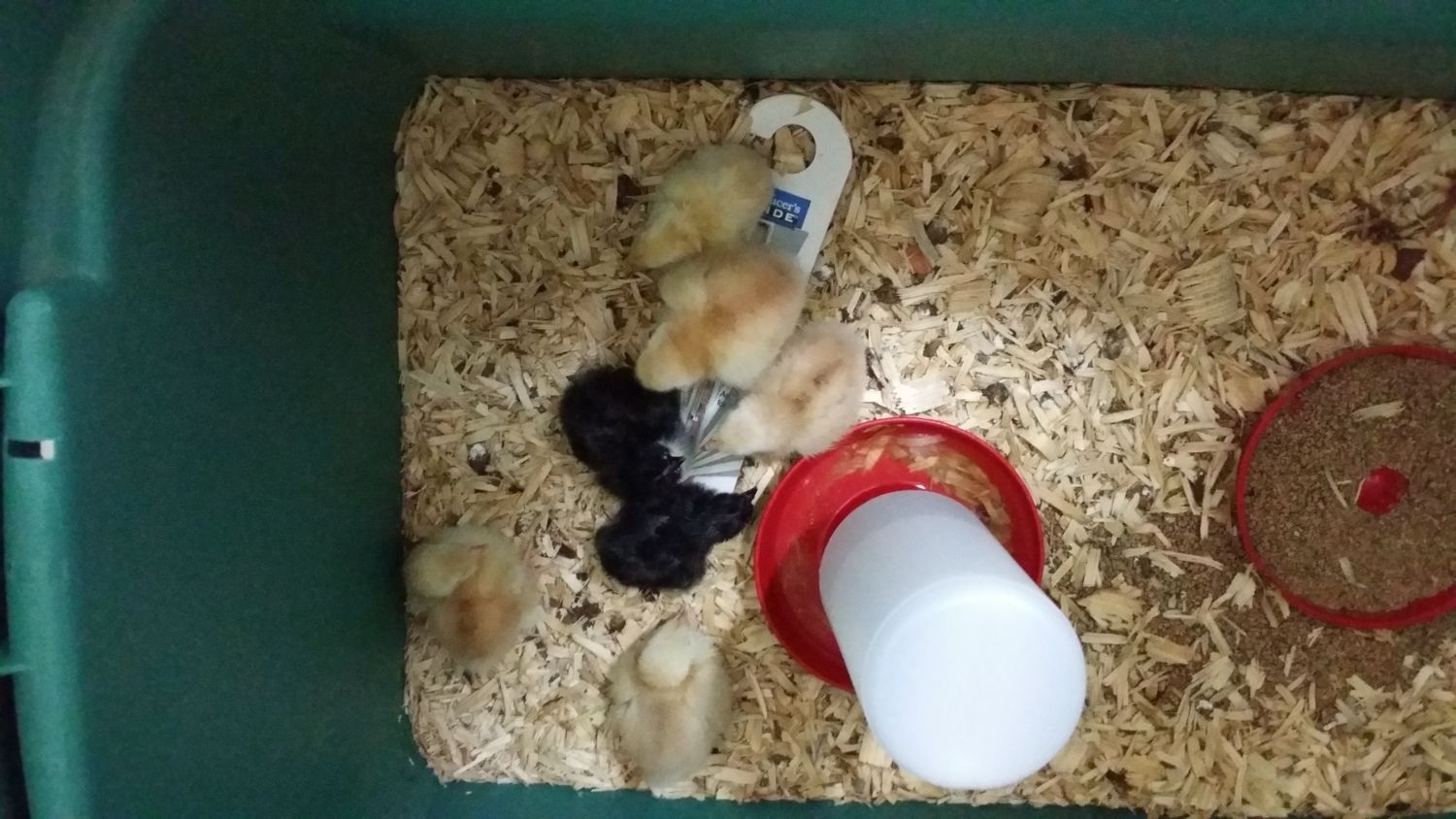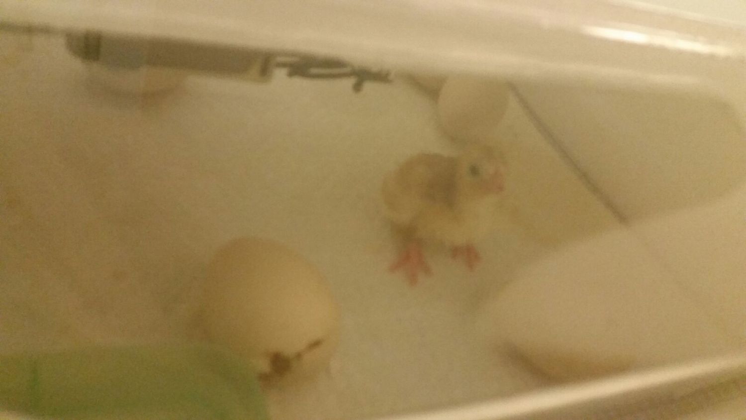 Guess what????? I am joining the surprise hatch club!!!!! My broody Peep has a chick that hatched under her!!!! According to the lady who I picked up the eggs from, they should not have arrived until next weekend????? I'm thinking she mixed some dates up! Peep has 2 more eggs under her, but I think one is on the same timeline as the chick that hatched today and one is due next week...YIKES!!! Here is Peep and her new baby!!!