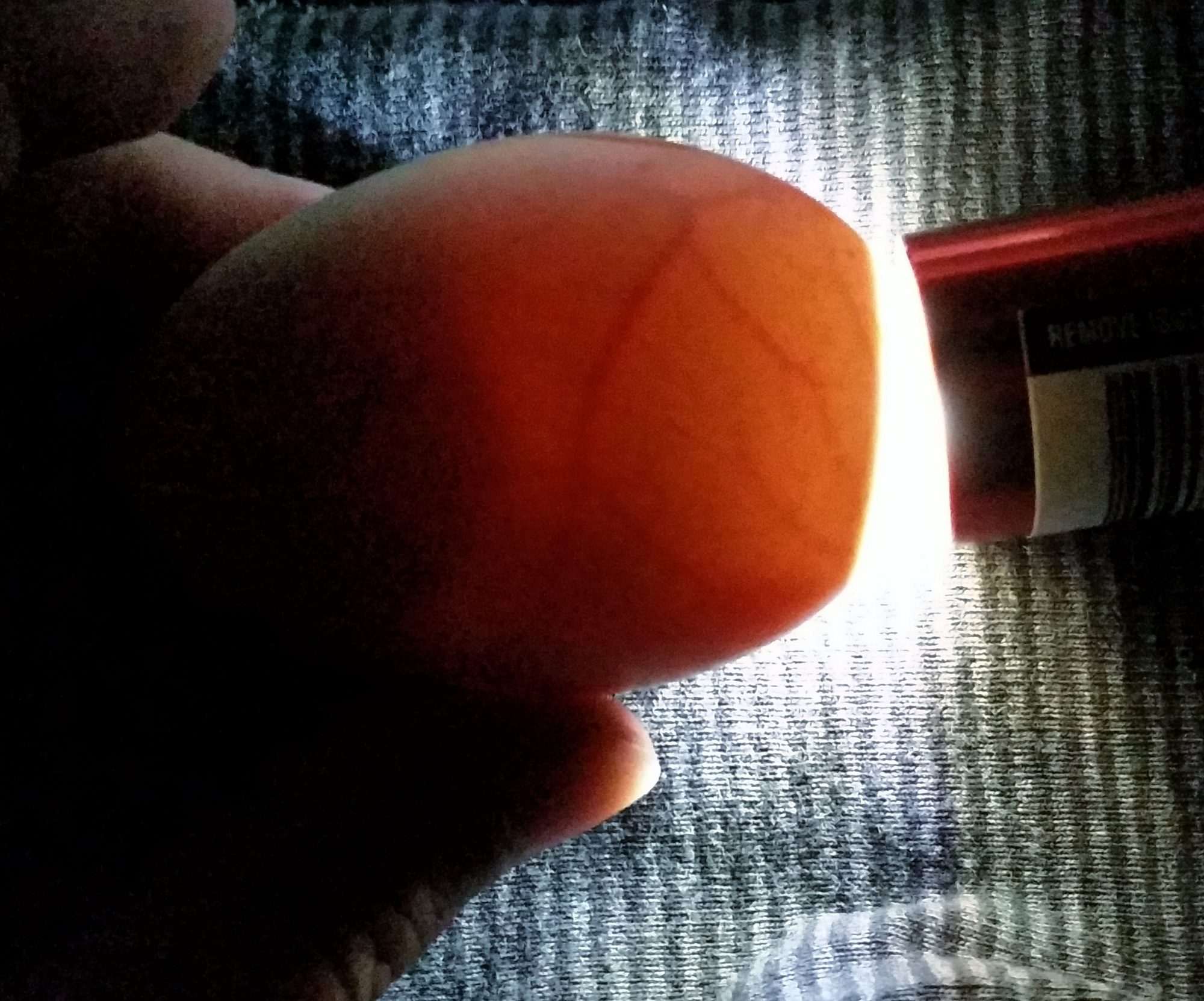This photo above has weird streaks going through the dark bit, no idea what that is. Probably nothing. Although this egg is further along than the others I think, by a day or two.