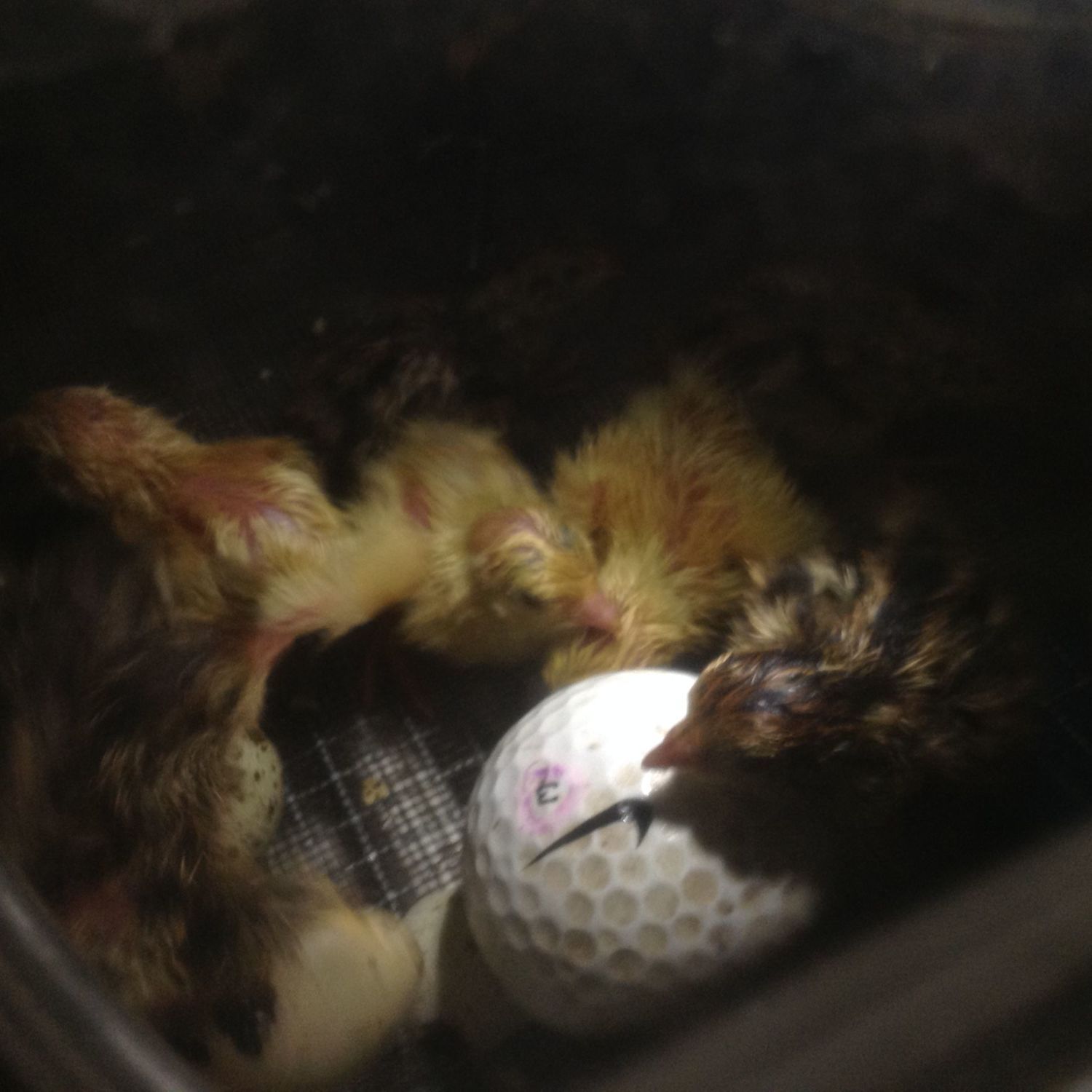 Hello,this is my first hatch in over20some years. I have one hatched out other two are working on it. All born may 24i have a large plastic tote with wood shavings in it small feeder Di