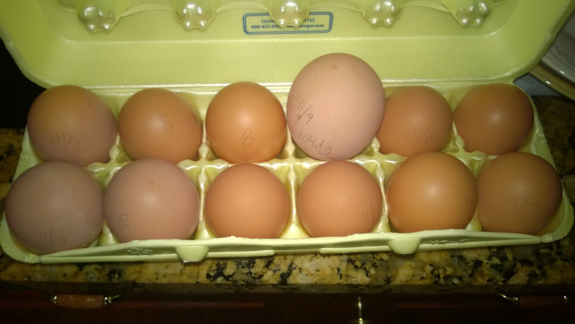 ccrane11 few eggs from my own flock. I have Rhode Island Red, Rhode Island White, Golden Sex Link, and New Hampshire Red girls. They are bred by a Rhode Island Red or a Silver Lackenvelder rooster.