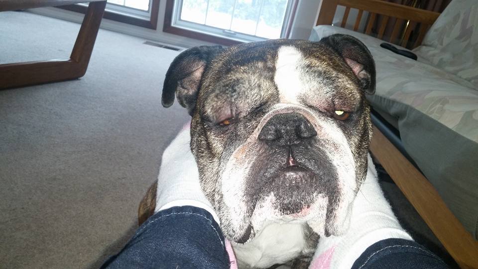 He was a lot more red, and a lot more swollen at 7 am this morning. This was taken.... 45 min ago maybe? This is after 2 benadryl, a zyrtec and a shot of steroids from the vet. No clue on what he found with his face that has him so swollen from an allergic reaction. Maybe a spider bite... Maybe a plant out in the woody area that he stuck his face in. But he wasn't like that last night at midnight when I went to bed, according to my husband who left at 5 am, wasn't like this either, but sure was when he woke me up at 6 with his panic bark.
