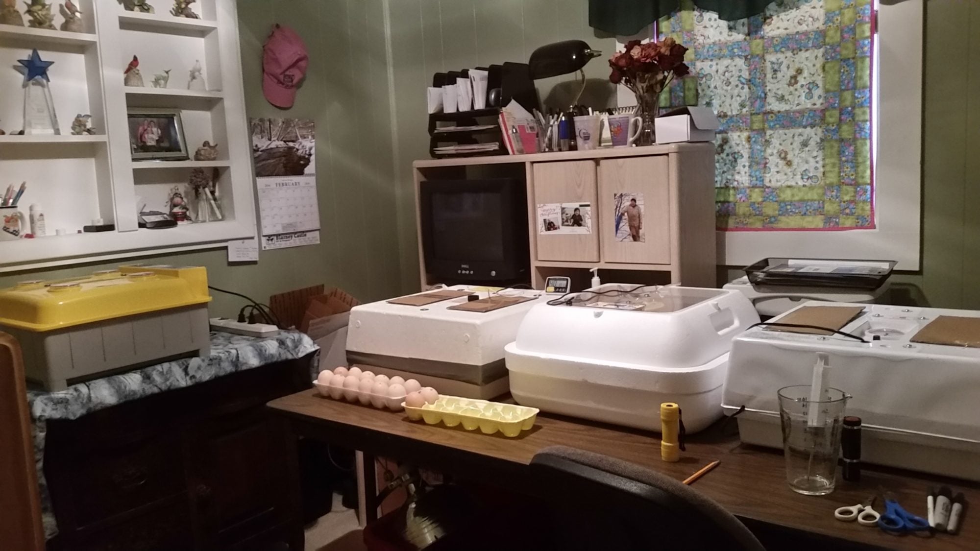 I hear that. In-laws go out of town? We take their three dogs to join our two dogs at our place. Also chicken math if last time was any indication.DH is out of town for a month so the one bator has become 5 ....... And in 3 weeks it will be one again.
