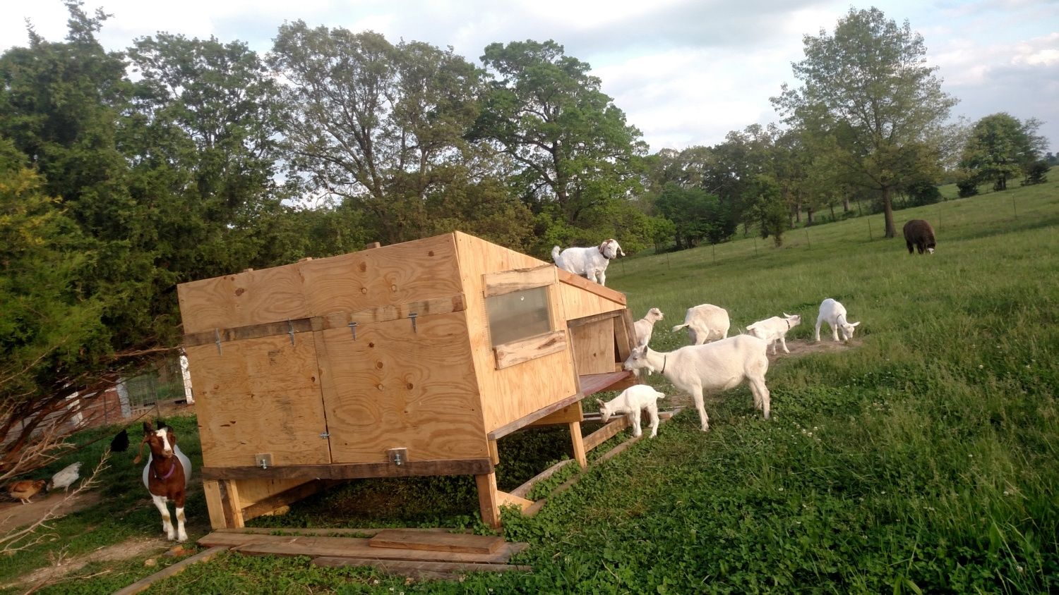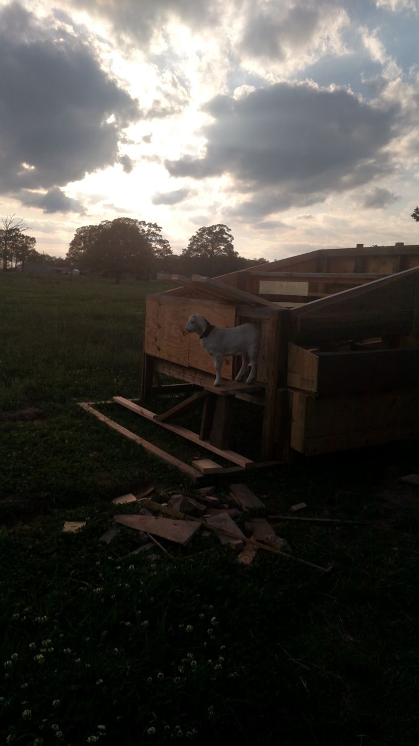 I got the roof on the new coop yesterday much to my goat's sorrow![]()