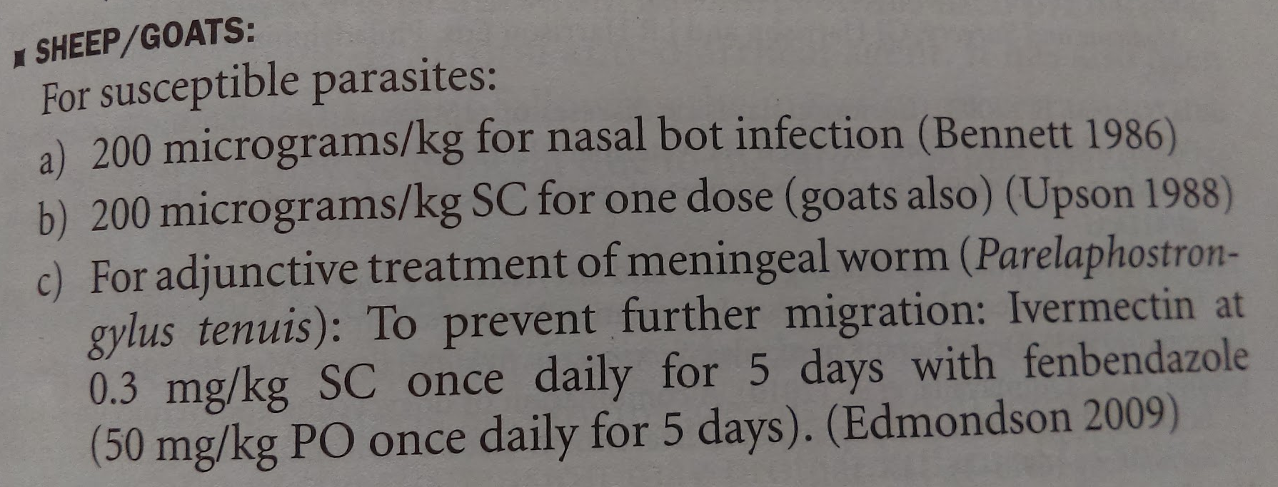 Quote:Meningeal worm doesn't show in fecal or blood work, unless something has changed in last couple years, only positively identified with necropsy. Some reason deer just pass it through, but it gets into the spinal canal of goats, sheep and llama.
