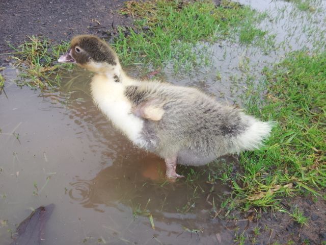 She/he is four weeks old tomorrow and I just LOVE the black marks she's developed on the back of her neck