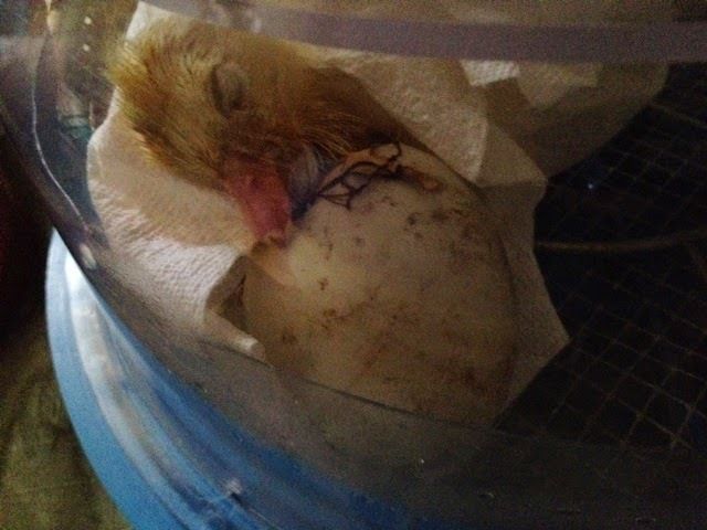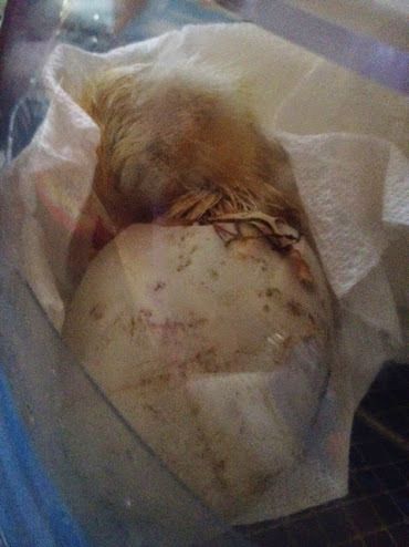 And you can't get him in an upright position? If not then do this, place the smaller end of that shell up as close as you can to the side of the bator. We need pressure the bottom of that shell. is he making any noise? Is that paper towel wet?The cute hallmark pics (which show nothing, lol!)