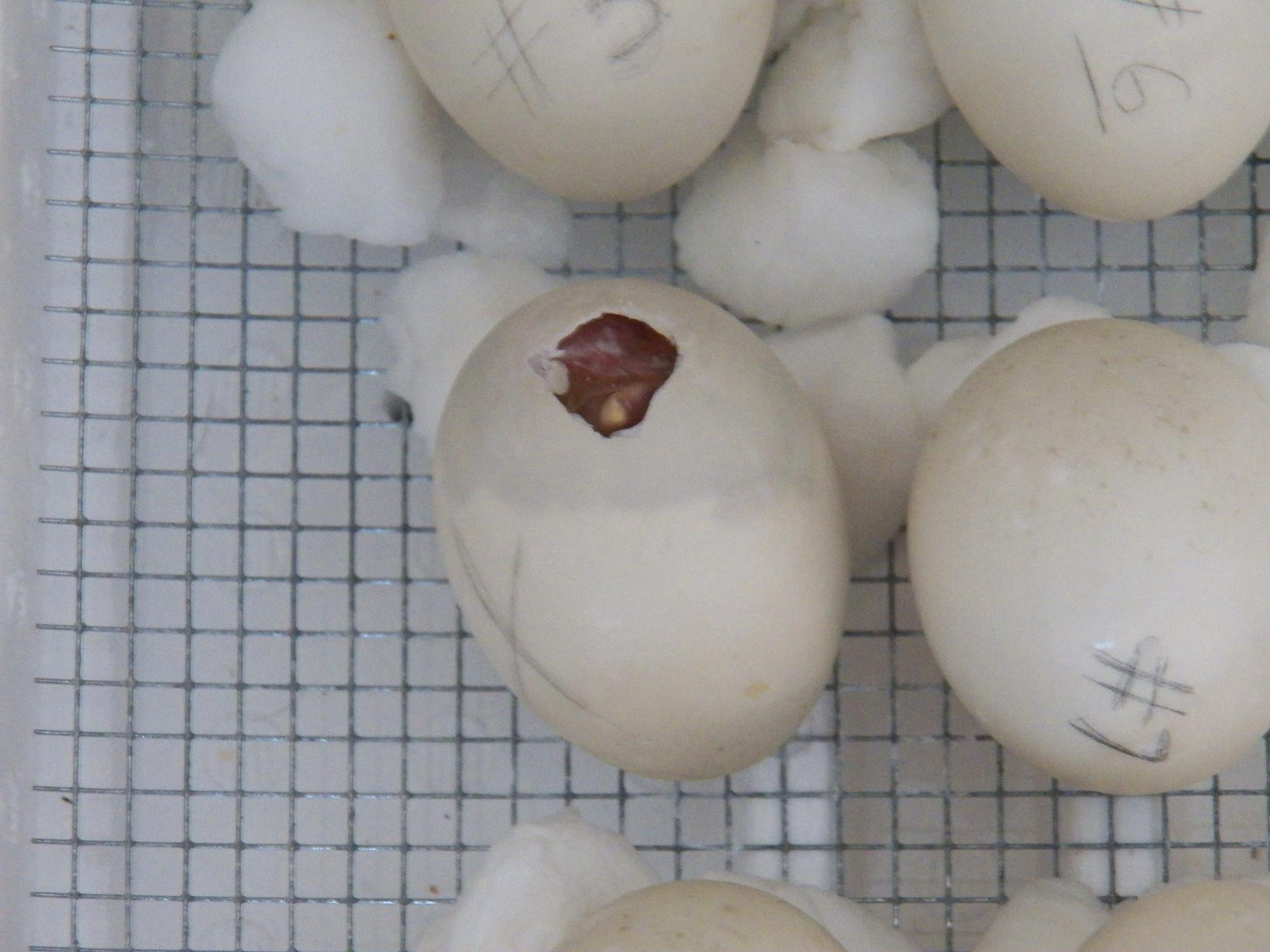 Have you already wet her down? The shell around the hole is a different color then the rest of the shell under her?? which tells me, it's very very wet. That's to much water in there.