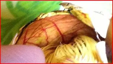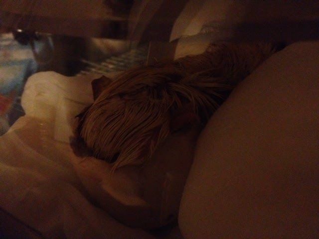 Maybe it was his belly button. It looked like he was laying on a toffee candy earlier.