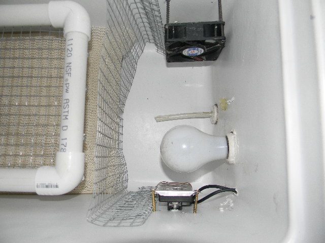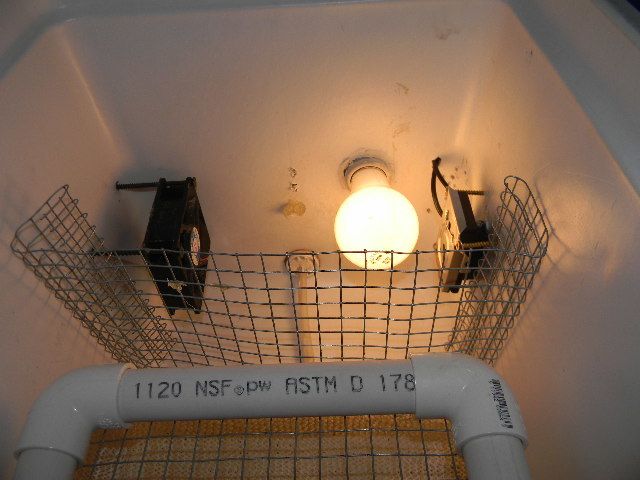 My dh built me an incubator made from a cooler, the big blue and white ones they sell at wally mart. well he was trying to surprise me for xmas and he had eggs incubating in it when he brought it up xmas day. the temp was a steady 99.5 and the humidity was pretty steady to but the hatch went really wrong and all embryos died. So the incubator sat fora few weeks and now we bought 2 new thermometer/hydrometers and I got one on each end of the cooler on the inside where the eggs will be, one on the upper left side and one of the bottom right side.