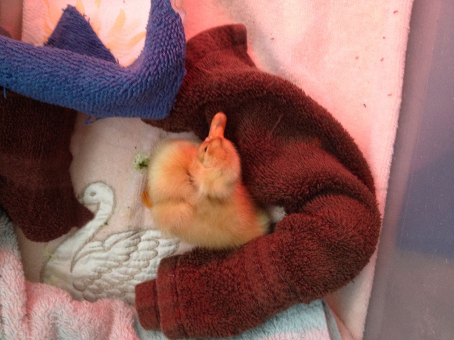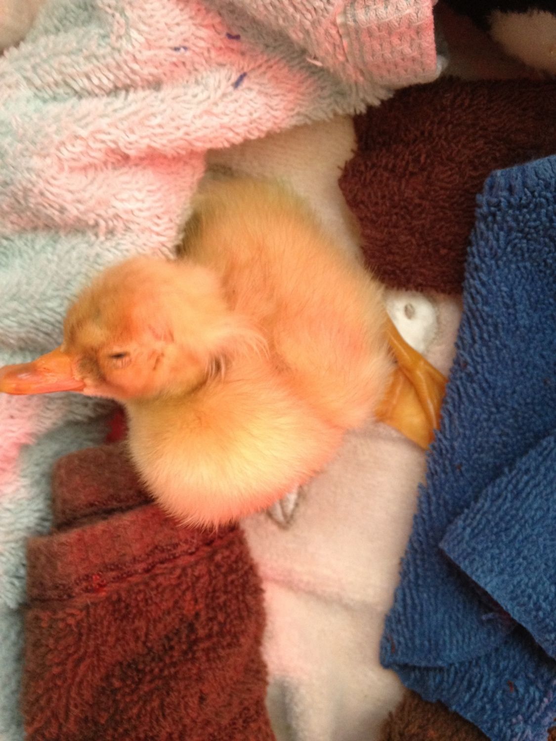 I hope someone comes in that can tell you what needs to be done for this lil one. you say he is eating and drinking? thats alot of hope right there, and save a chick is better than nothing right now. After reading Kevins post about the crested gene and all the problems that can come from it, I honestly don't know what to say about this lil duckling. I know your going to give it all the care and love you can and hopefully that will be enough. But you have to know it could still not make it. I know you have figured out what to do to keep him up right for sleeping by now. Please let us know how it is doing in the morning. Does it peep alot ? is it trying to walk about at all?
