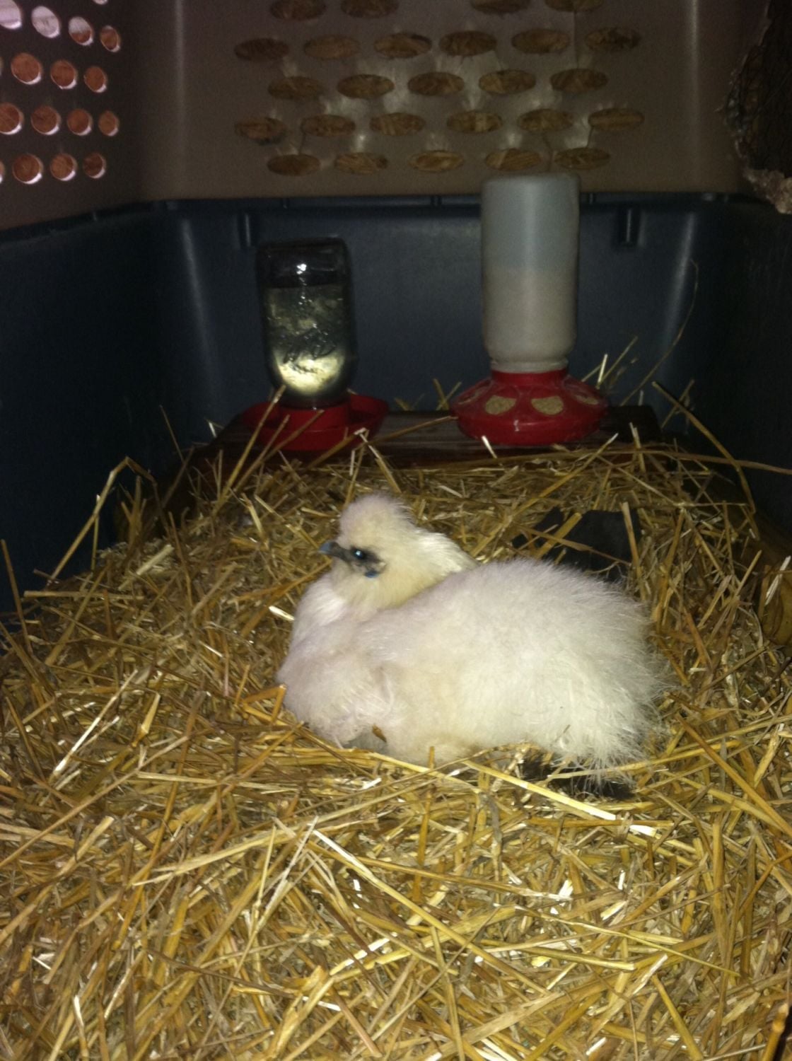 It's a plastic kennel (petmate vari kennel) so the only bars are on the door and that's 1x1 grid. Our wire crate is in use with a foster dog and I just cleaned the huge crate I use to integrate new chickens. I didn't think a little silkie needed a 48in crate all to herself.