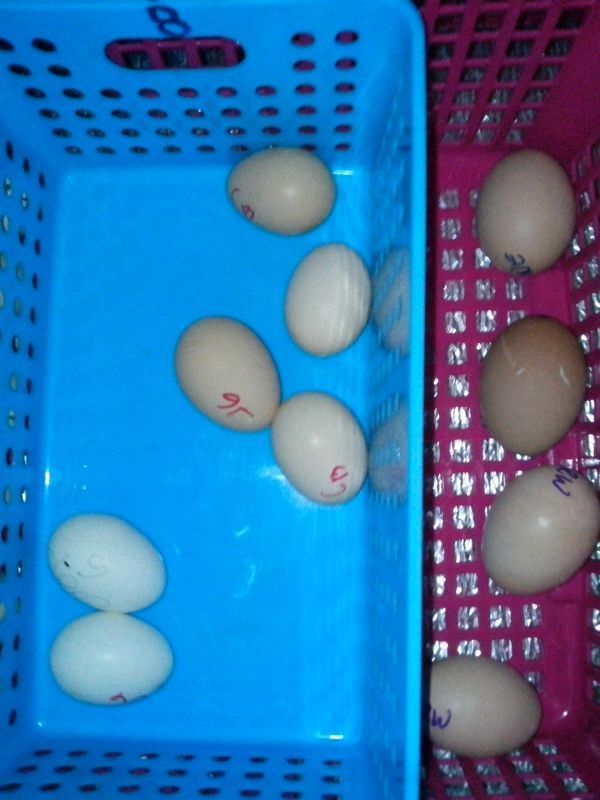 We have 12 that DH is not sure about. He is the one that can tell if an egg is worth the space. he wants to give them until Monday to see if they develop better or not. If they shows good signs of development I will be hand turning and if not they will go and the turner will be back in. lol