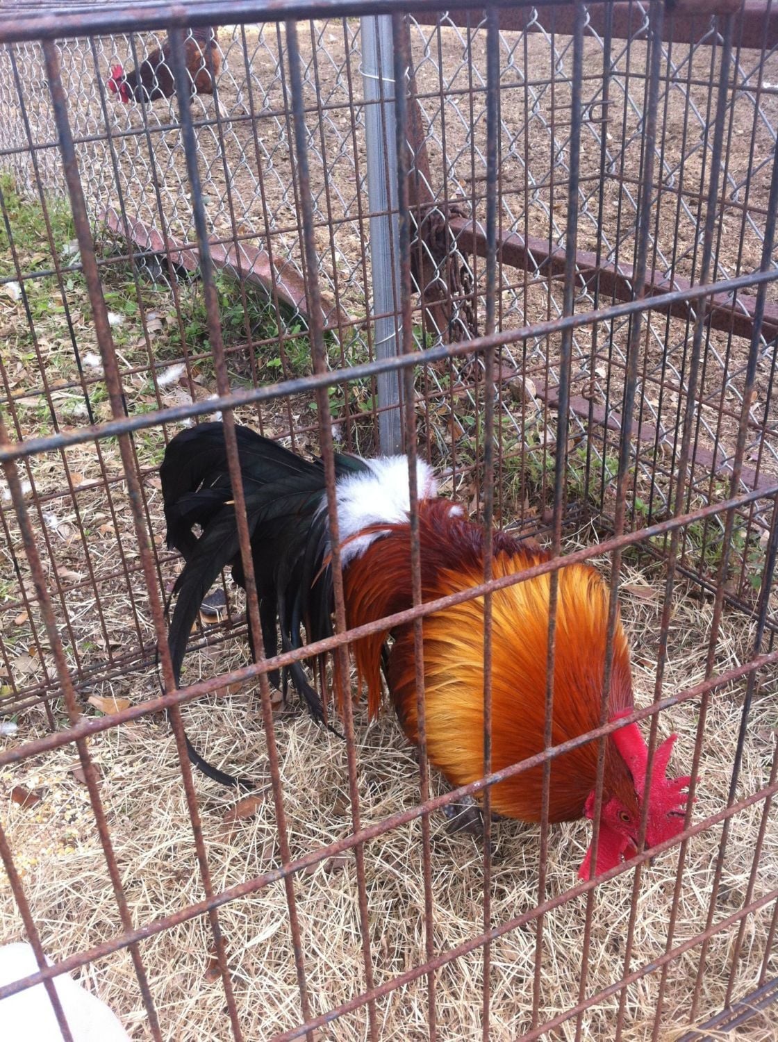 Rolzaustralorps said: iv had em since he was a chick been told phienox but hes lacking white ear loaves is this red jungle fowl? an dnt worry hes not always pined up just didnt let him out yet Click to expand... this guy is mixed with either phoenix or American game. NEVER BUY SO CALLED RED JUNGLE FOWL FROM HATCHERIES