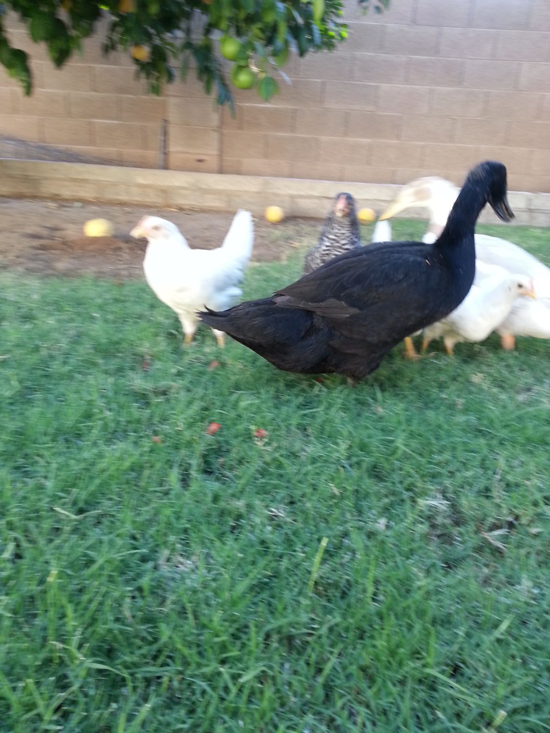 Now, I don't know their genders, but I'm assuming our black is a drake, and the fawn is female.