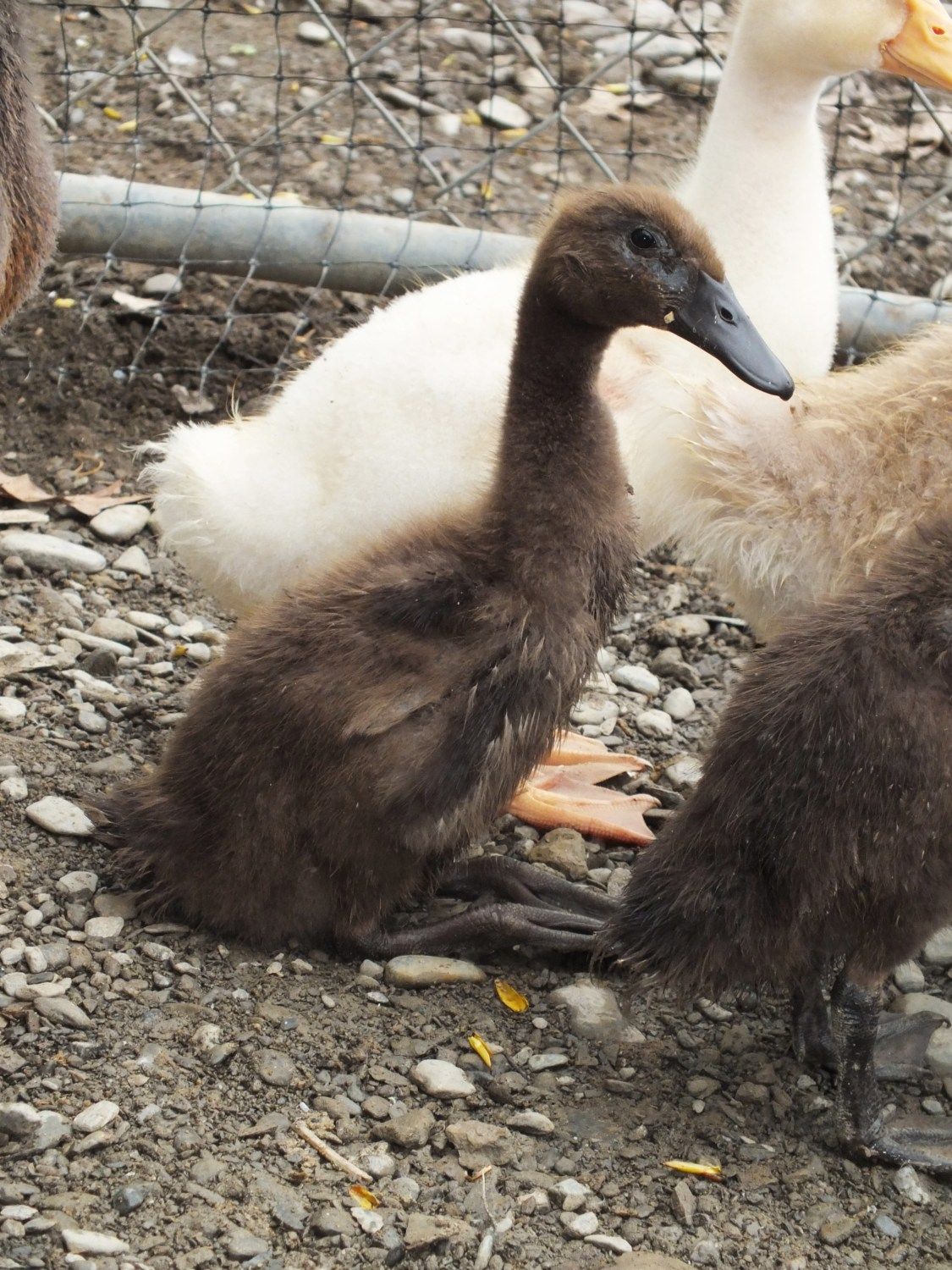 Here are my 3 chocolates. We just got them from a poultry sale thing a few days ago. Not sure how old they are, but they are starting to quack