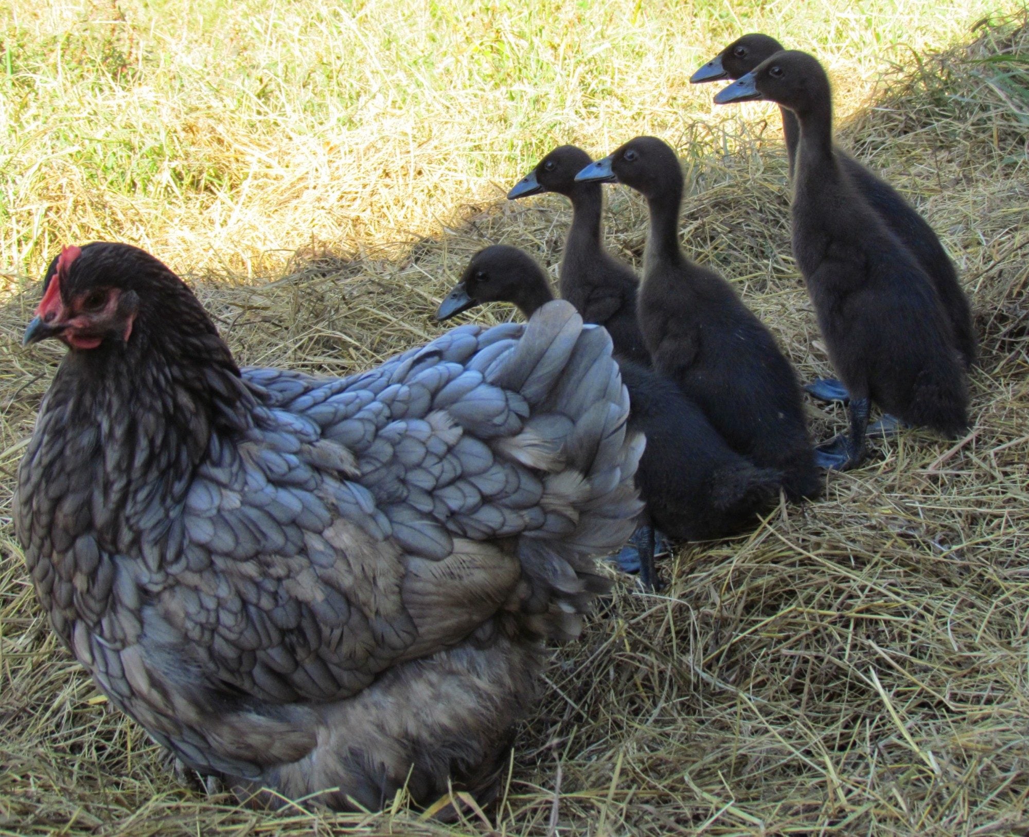 That is adorable, have no idea on if you can sex them by bill color but they are the cutest things. and their mama is lovely too.Here is my sweet runner ducklings with their momma at 2 weeks old.