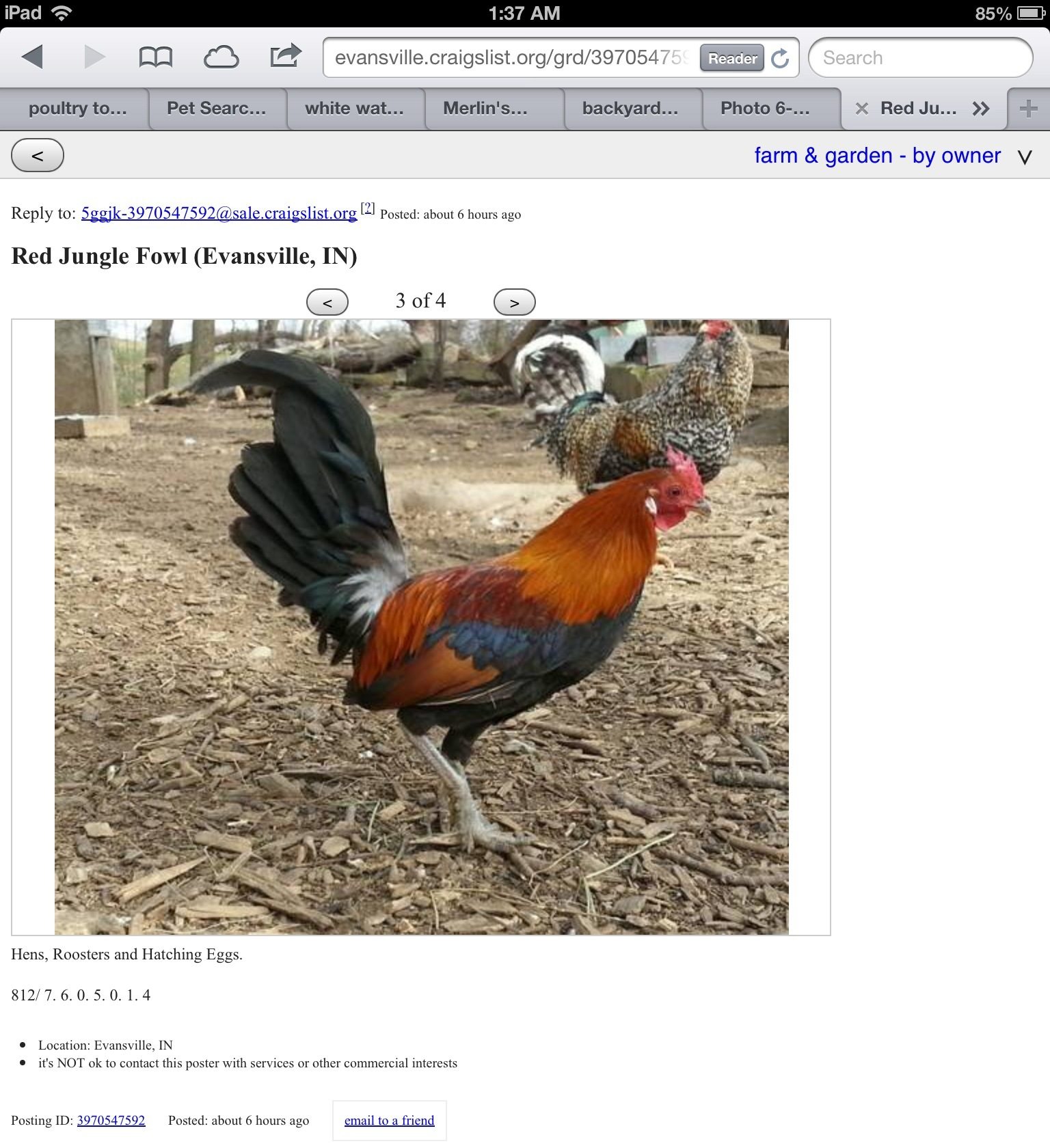 I happened to see this ad and since it's not a typical breed and they have hens, roos, and hatching eggs, I thought I'd post it in case anyone is interested. I'm sure bradselig already has these in his catalogued collection. Ha