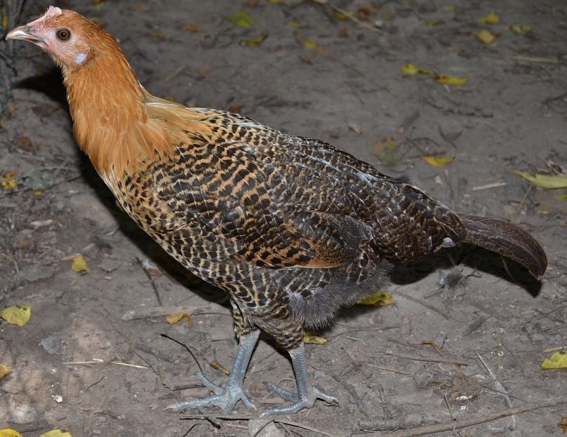 Ihi the Golden Campine, on her last tail feather (she's lost it since then) :