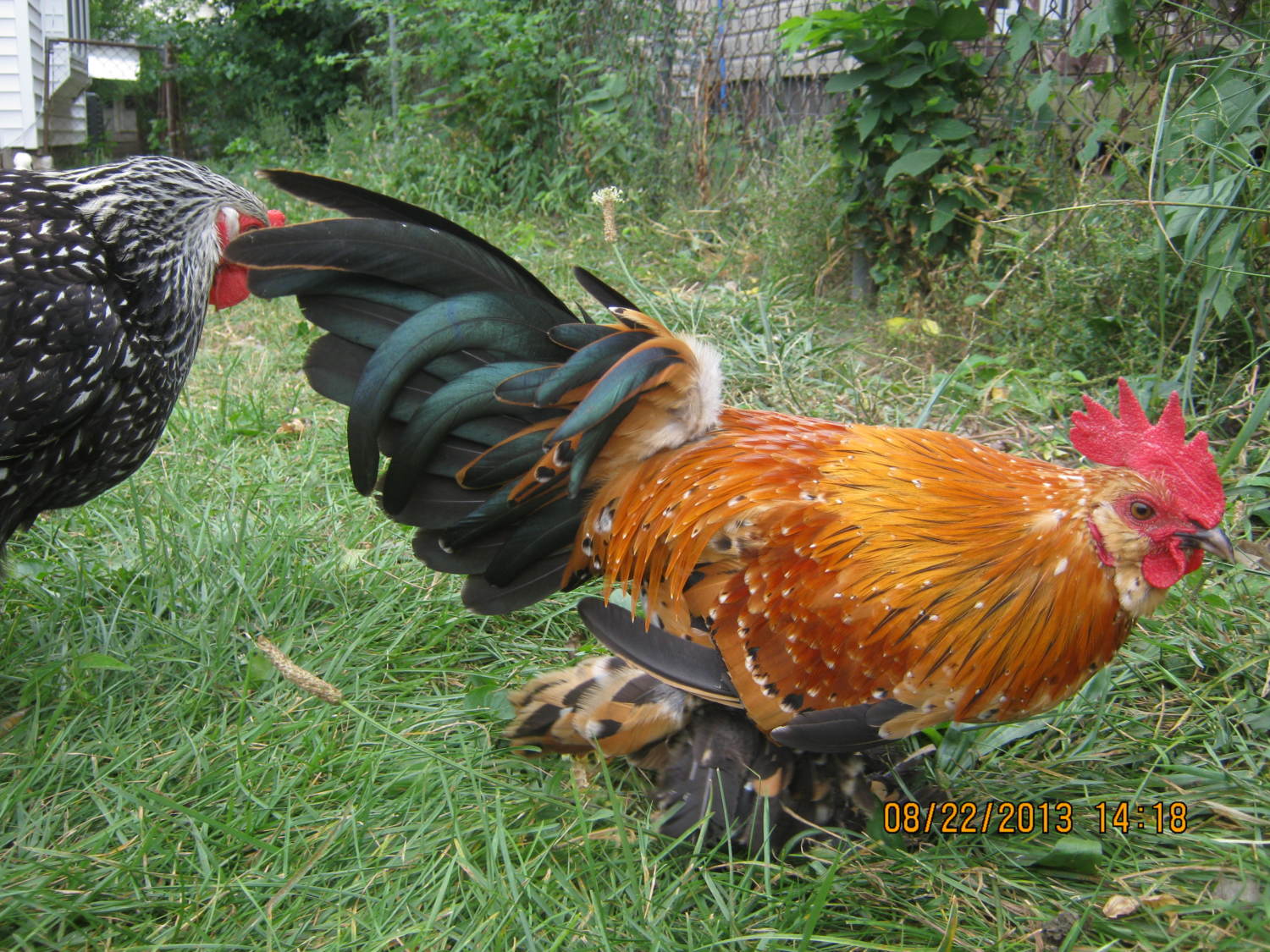 That's rare here, I enjoy every minute of it when it happens.I brought home one bantam hen this weekend and now she's running around her part of the yard looking for friends. This is sad to watch. I should have brought home two of them so that she wouldn't be lonely. Everyone else was raised with at least one or two of the other birds. With this kind of thinking, I should probably expand the run or make the garden more predator safe.
