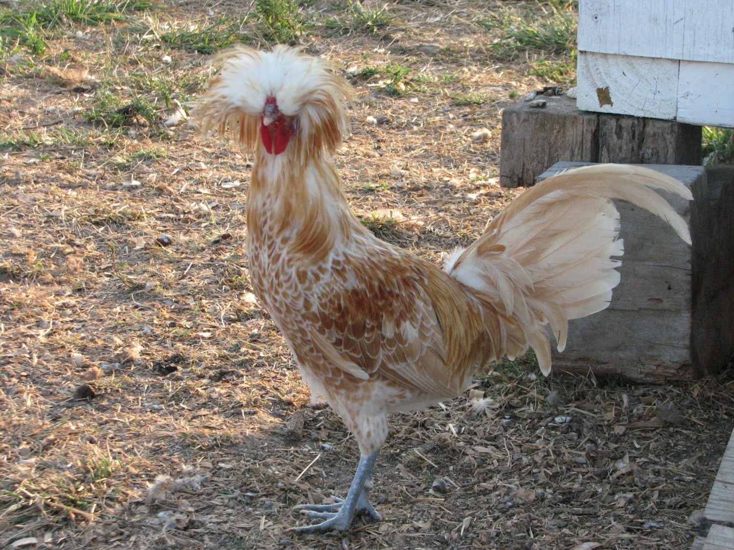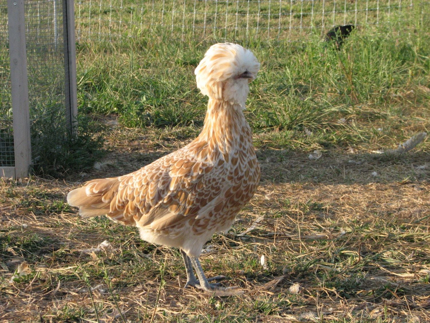 My male Buffed Polish. My partner and friends call him 'Penelope'. The Fayoumi sneaks up on him and gooses him all the time.