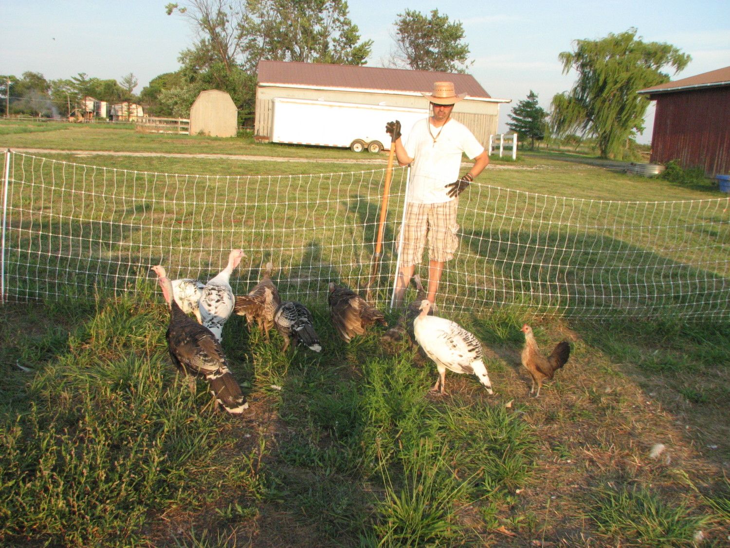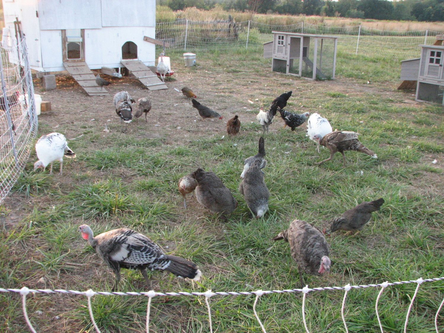 That's quite the collection of birds! Do your turkeys fly out of the fenced area? Where do they roost at night? Just curious what they do & need for fencing/shelter because, of course, turkeys are on the list of birds to try raising!Second Set: Laying flock and Turkeys