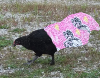 ETA: Oh, I forgot to include Cricket, who decided to lose all of her feathers around the beginning of the year, when we were having some REALLY cold weather. She was getting weak from the cold, so we made her a dress: