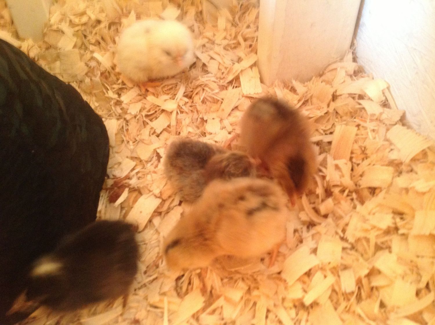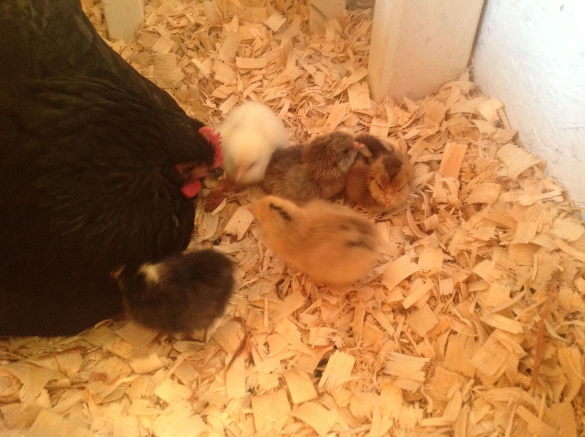 Well my broody did really well. On day 21 6 of the 9 eggs hatched. Mamma is doing a fantastic job with those babies crawling all over her and still sitting on the other eggs. The other 3 do not have any cracks in them yet, so I will give them another day or 2. I only candled them on day 10 and all showed signs of progressing, so it's still a waiting game. Here's my new babies.