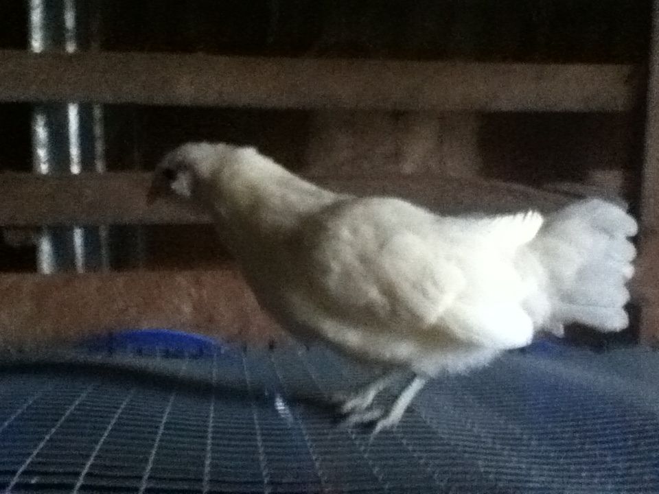 Here my only white bantam AM. She is still pretty young she is 10 weeks old. I cant wait to see what she looks like when she is full grown.