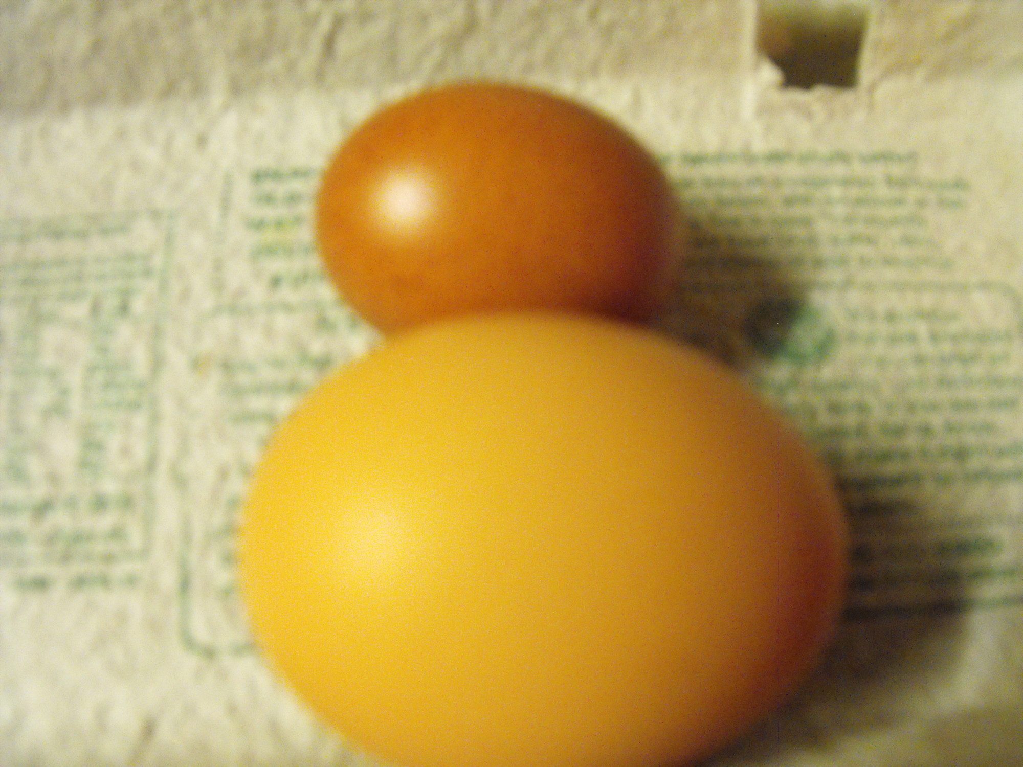 On a different subject I have a new layer today. I found this in the nesting box.The second picture is it compared to one of my other eggs. It looks like one of my banty eggs but they all lay white eggs so I know it wasn't one of them. It had to come from a slw, glw, bpr, rir or nh. Any idea which one lays an egg this dark? Thanks for any help.