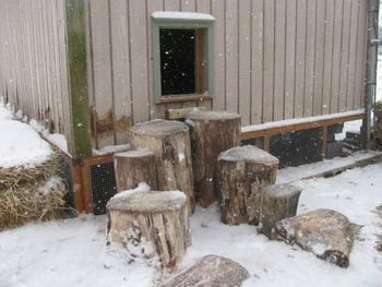 I thought about putting a little pile of sand in there for her to bathe in or some chick grit, but the babies a re very small yet. She is eating chick starter with them. It is too cold to put them outside for her to dust bathe and eat grit.