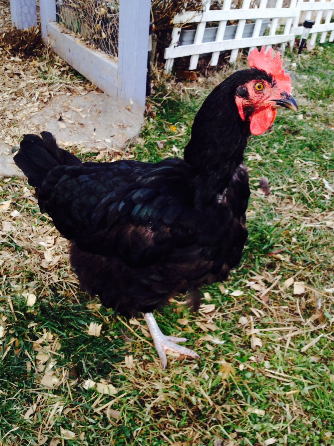 My cousin is still working on his second run then he's going to take the roo and three of the hens. I've only heard him crow once and it was a short, not very loud crow, so there has not been a problem...yet. I think he's gorgeous and I'd love to keep him if I could.