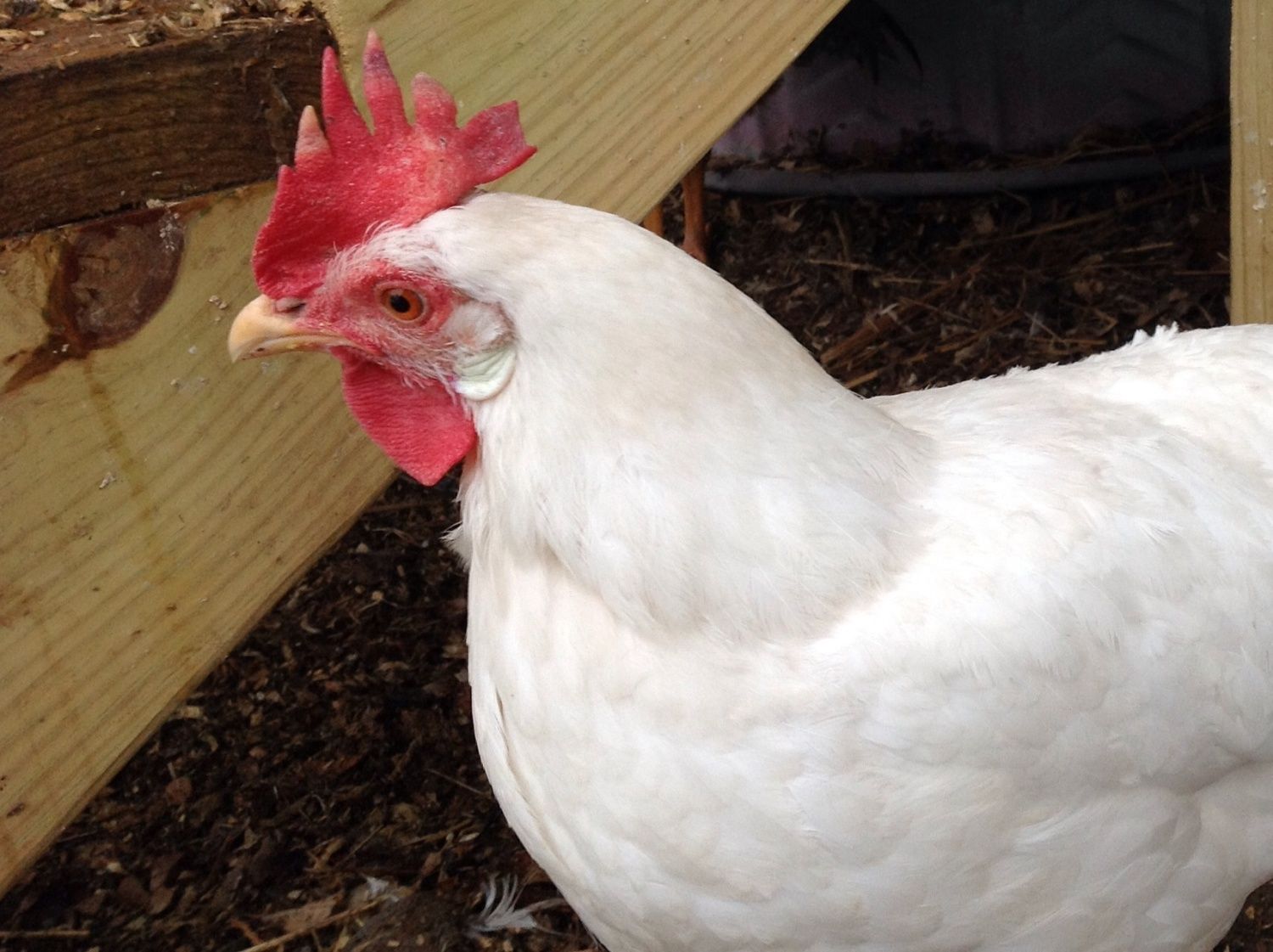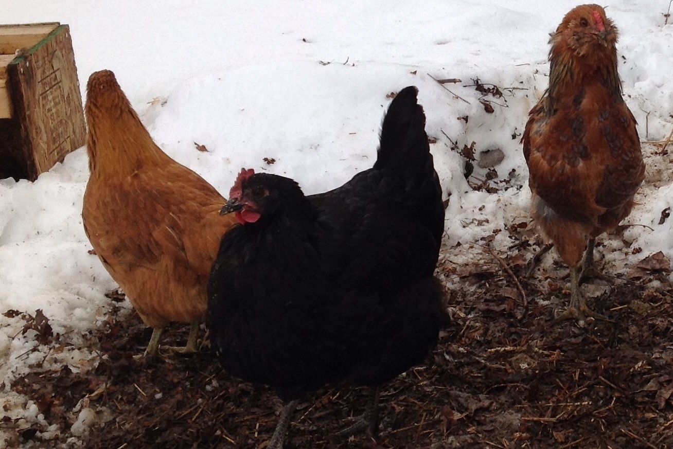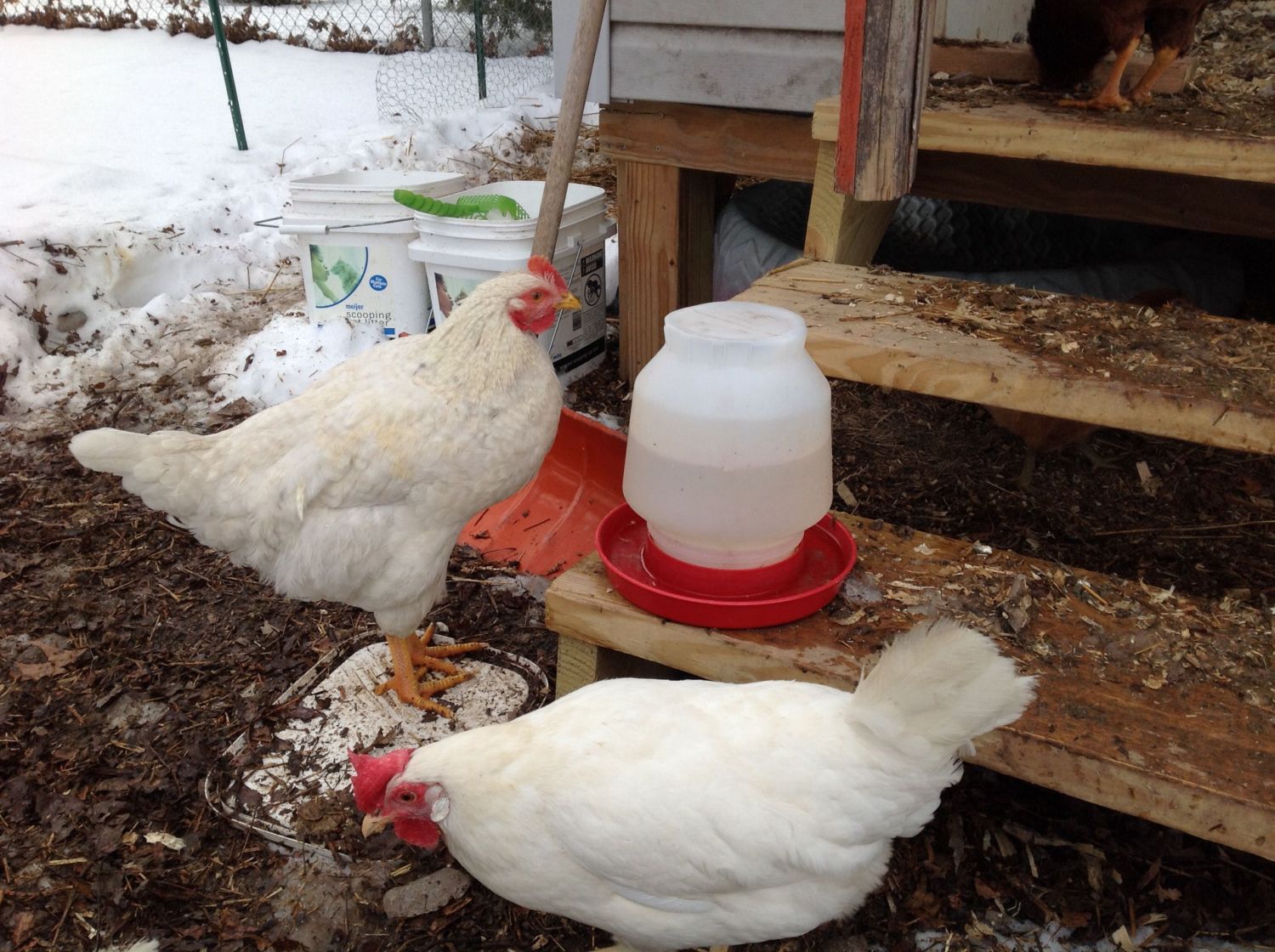 Are the whites leghorn? I love the combs when they tip over, adorable!Ok here are some pics of my coop. I left the top row of siding off I case I needed to cut some openings for ventilation. Boy, it sure looks messy with all the melting snow, but here they are.