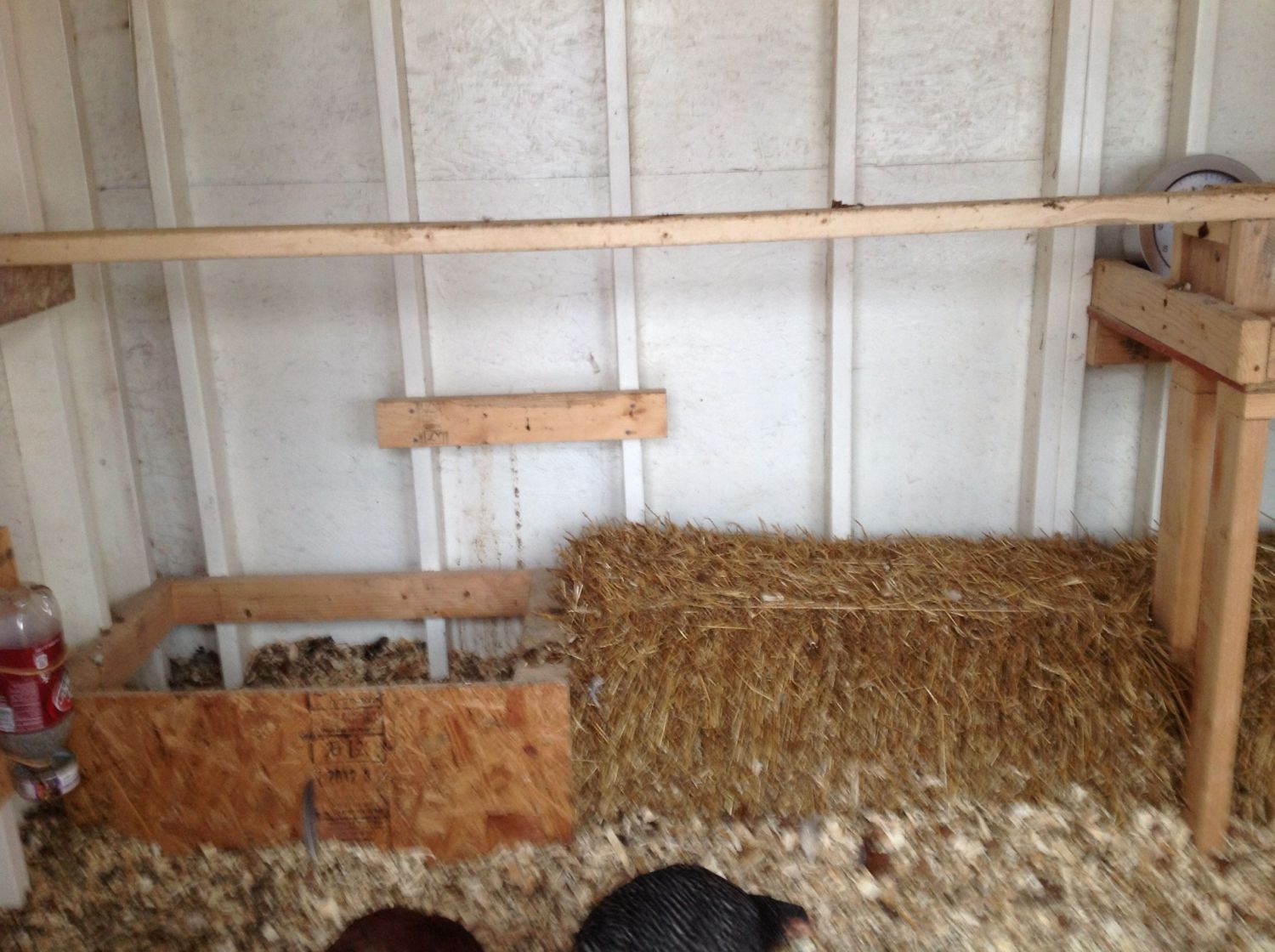 . This is the inside north wall. That window is totally covered from the outside. But I think both birds were roosting up the on the wooden diverter which resulted in the frost bite.