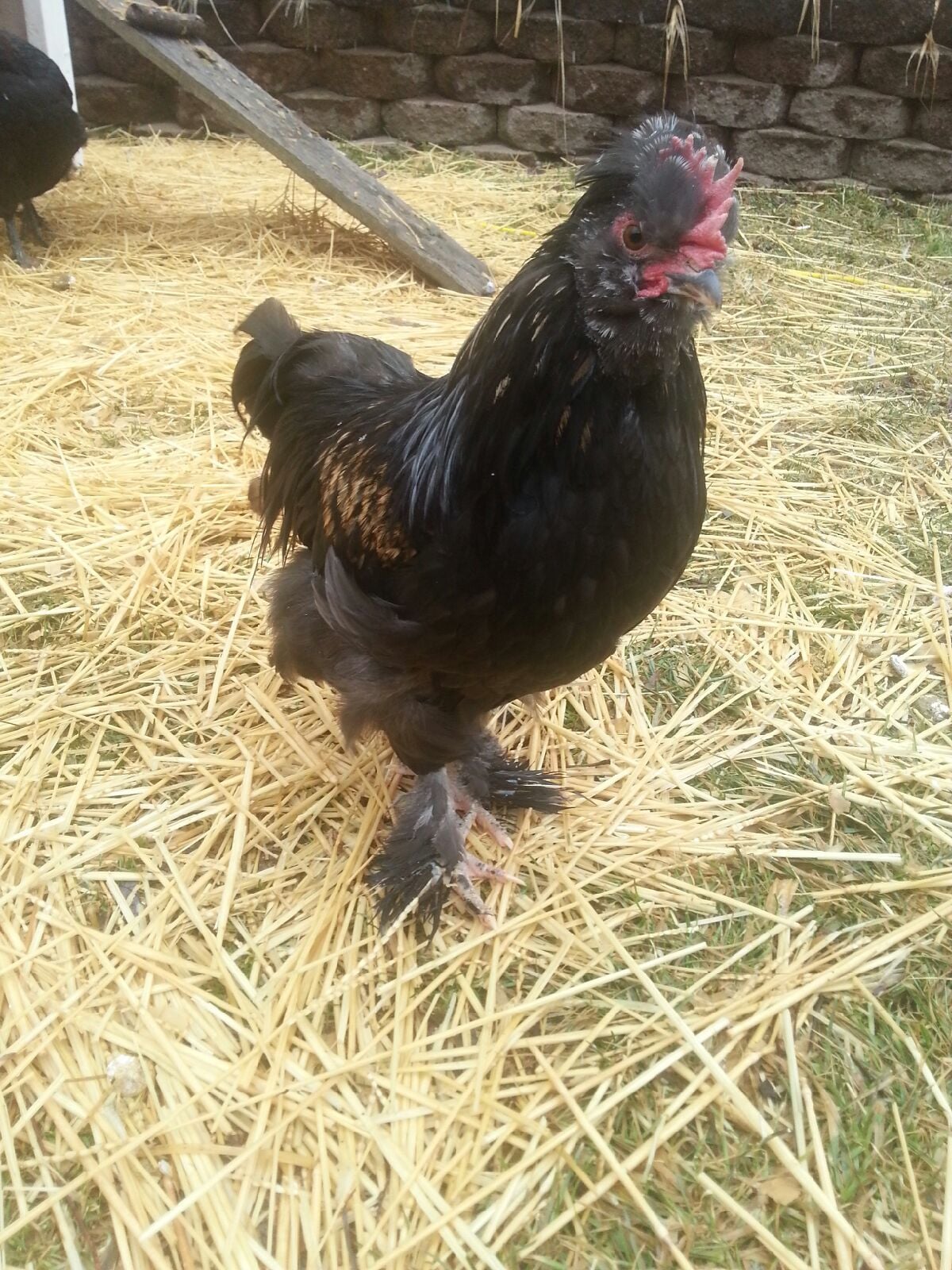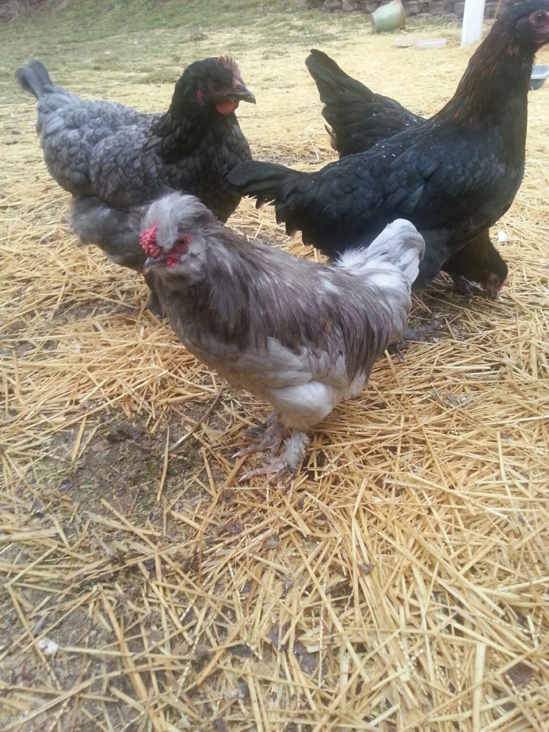 I have silkies that are very small. At 4-5 wks still look like day old LF chicks!! He is around them at times but never seems to be interested enough to go approach them. The silkies are in their own little dog kennel but the door is open so they can come out...stretch their wings as they wish. He isn't aggressive to any of the other chickens at all. I would suggest separating them but allowing visual contact for about a week then supervised time together to see how he does. Since he'd be alone during that time he'll probably be very glad to finally be with them.Oh, he would fit in great then. I just love his color. My girls and roo come running when I call and don't mind being picked up. I am out there 5-6 times a day, more if its nice weather. They free range when I'm in the yard. Would he do ok with chicks do you think? I have 8 eggs in the incubator, Icould throw them together after they hatch.